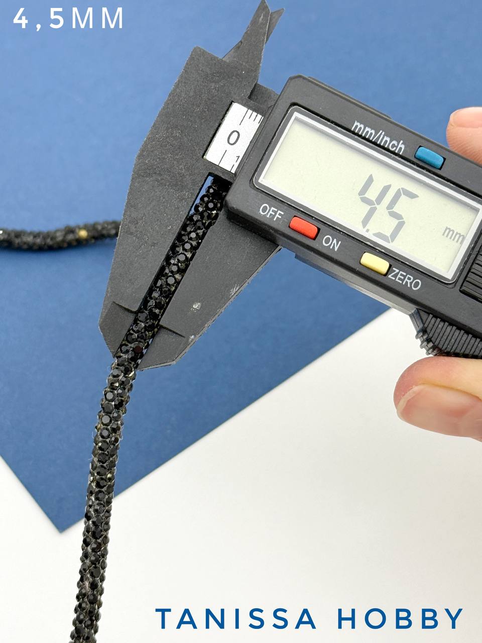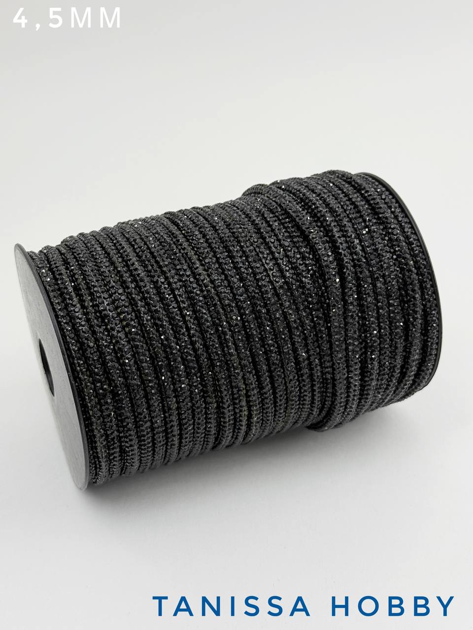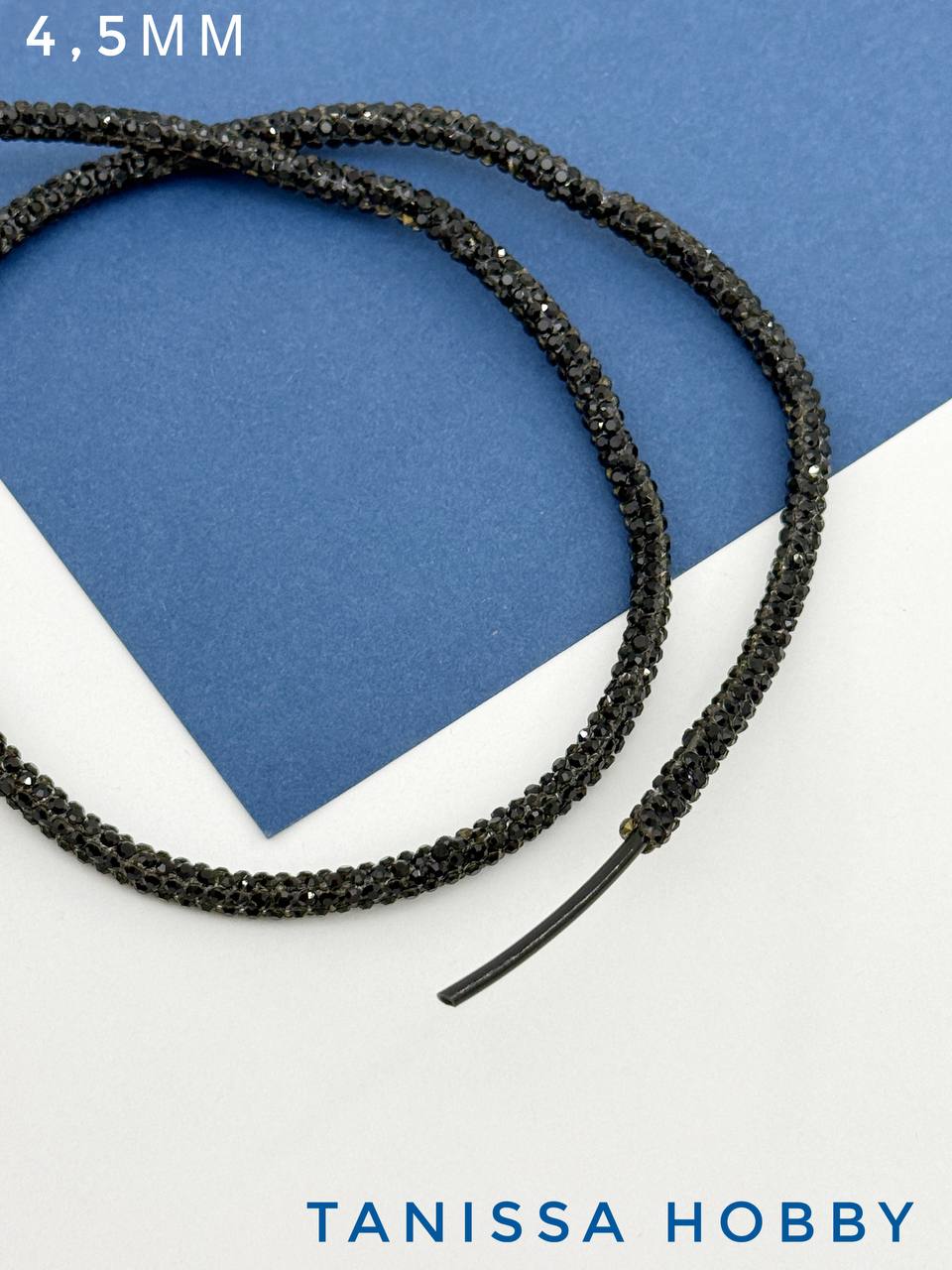 Стразовый шнур, черный JET, 4,5мм, полый, Категория В, 10СМ, Л98