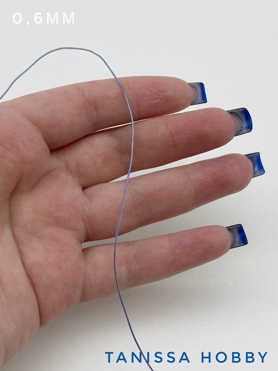 Шнур шамбала нейлоновый для браслетов 0,6мм темный голубой, КАТУШКА 35м, Ц030