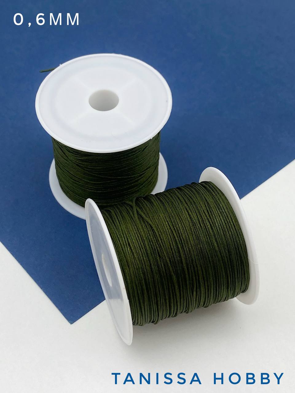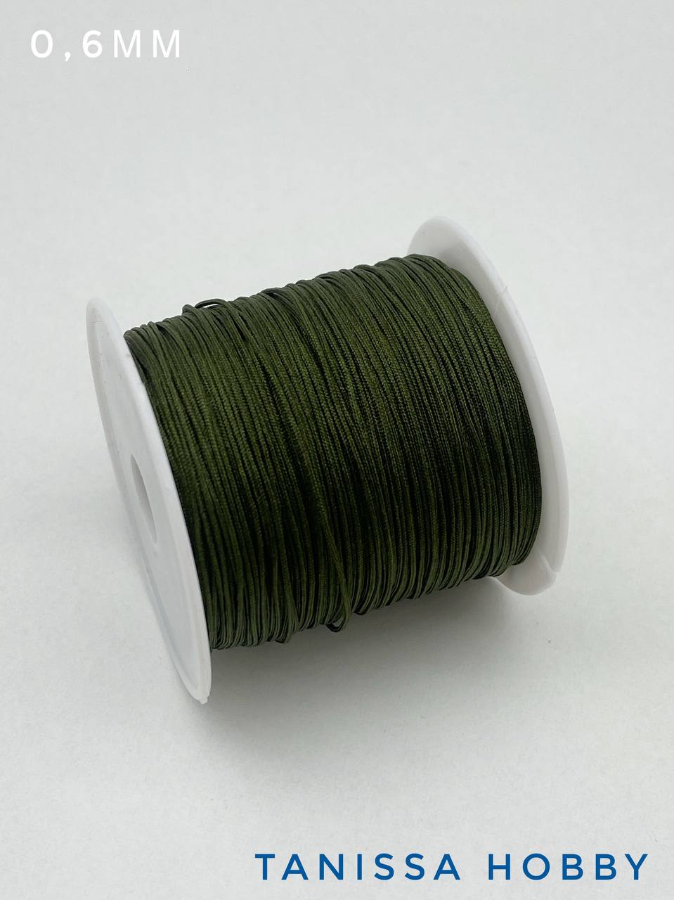 Шнур шамбала нейлоновый для браслетов 0,6мм темно- зеленый, КАТУШКА 35м, Ц033