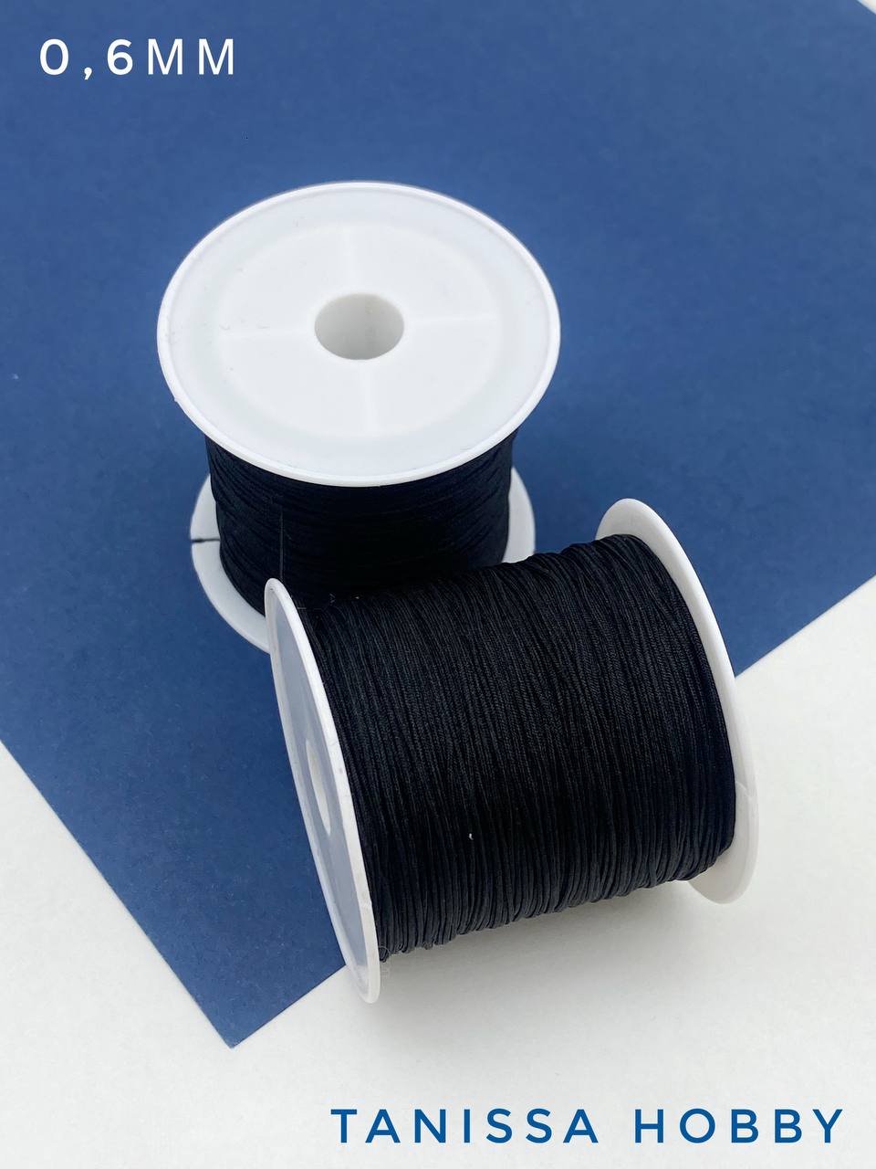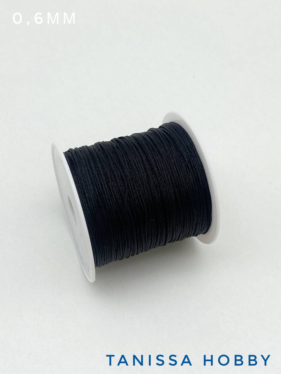 Шнур шамбала нейлоновый для браслетов 0,6мм черный, КАТУШКА 35м, Ц035