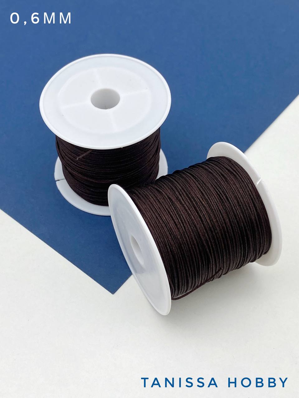 Шнур шамбала нейлоновый для браслетов 0,6мм коричневый, КАТУШКА 35м, Ц037