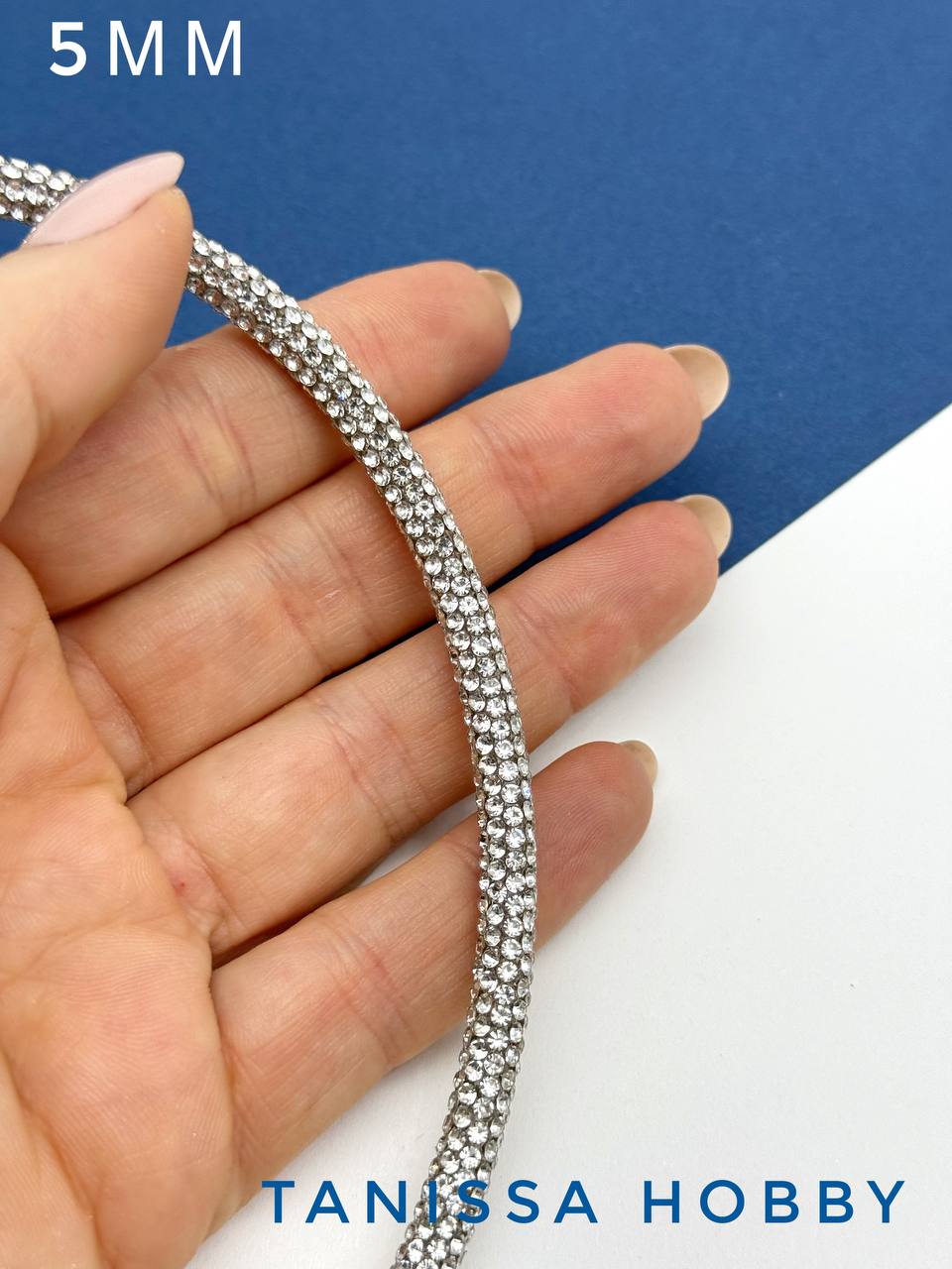 Стразовый шнур, прозрачный CRYSTAL, 5мм, полый, 10СМ, Л61