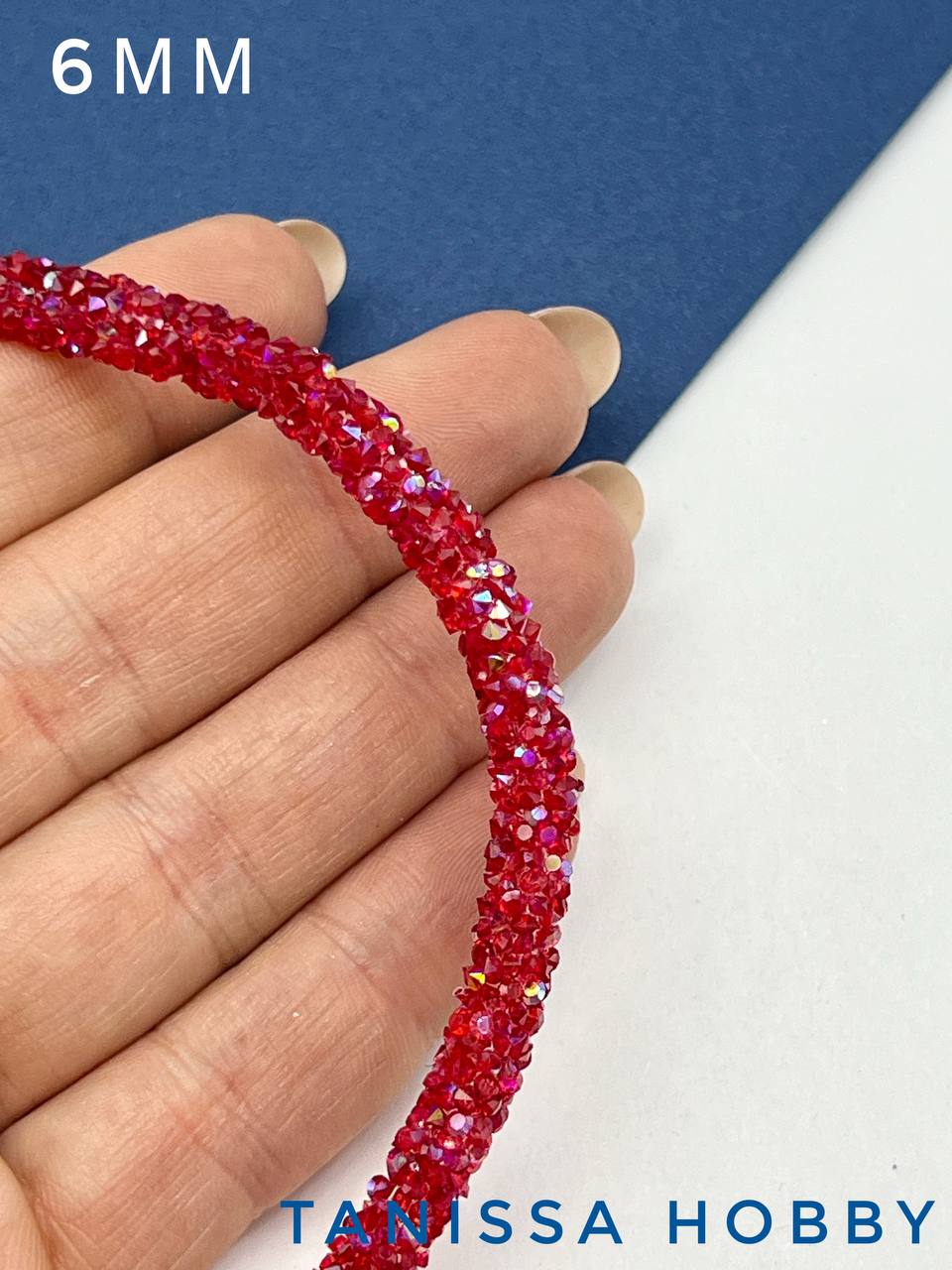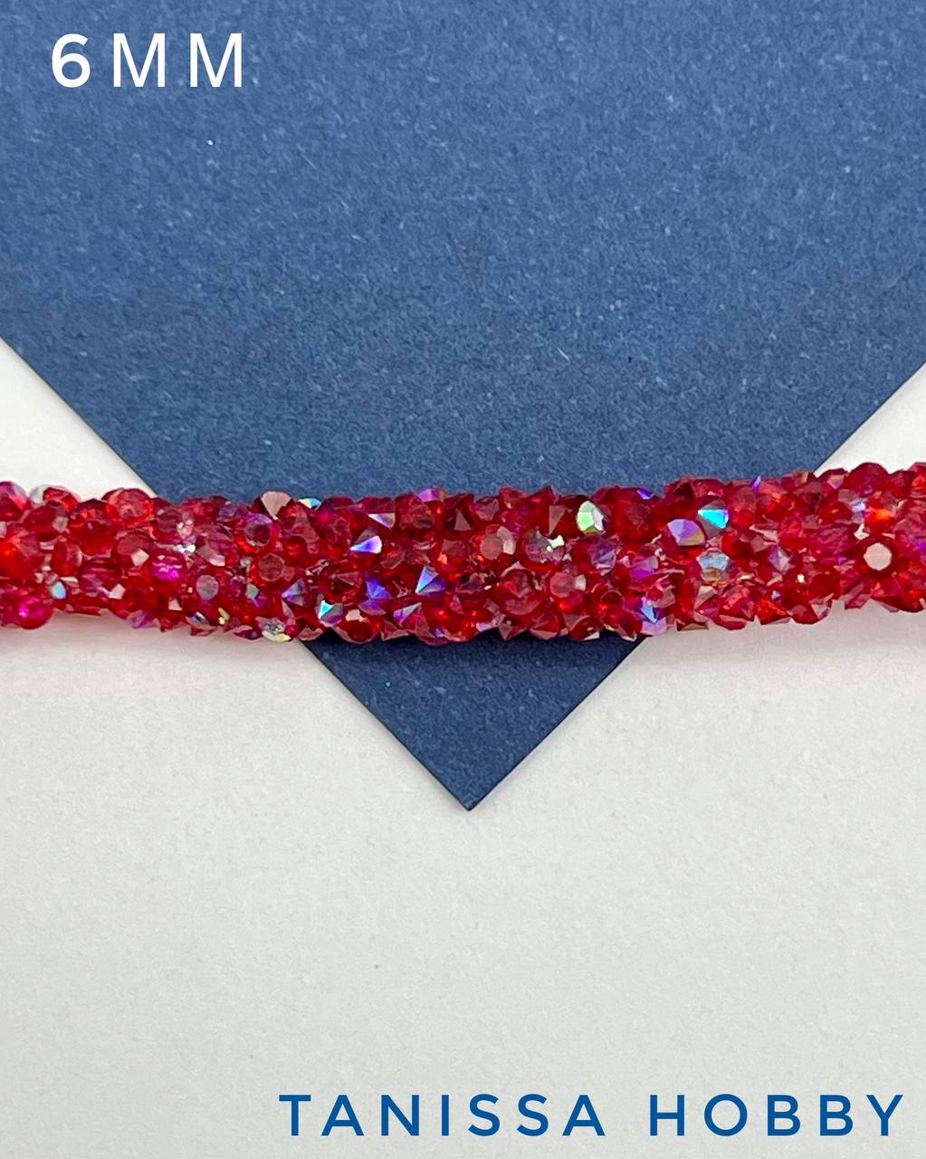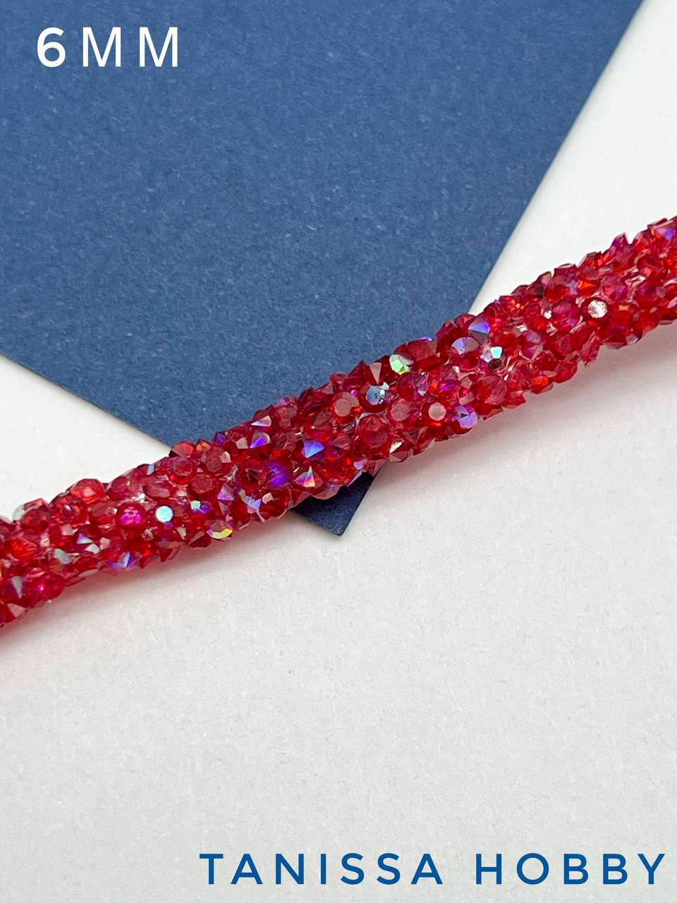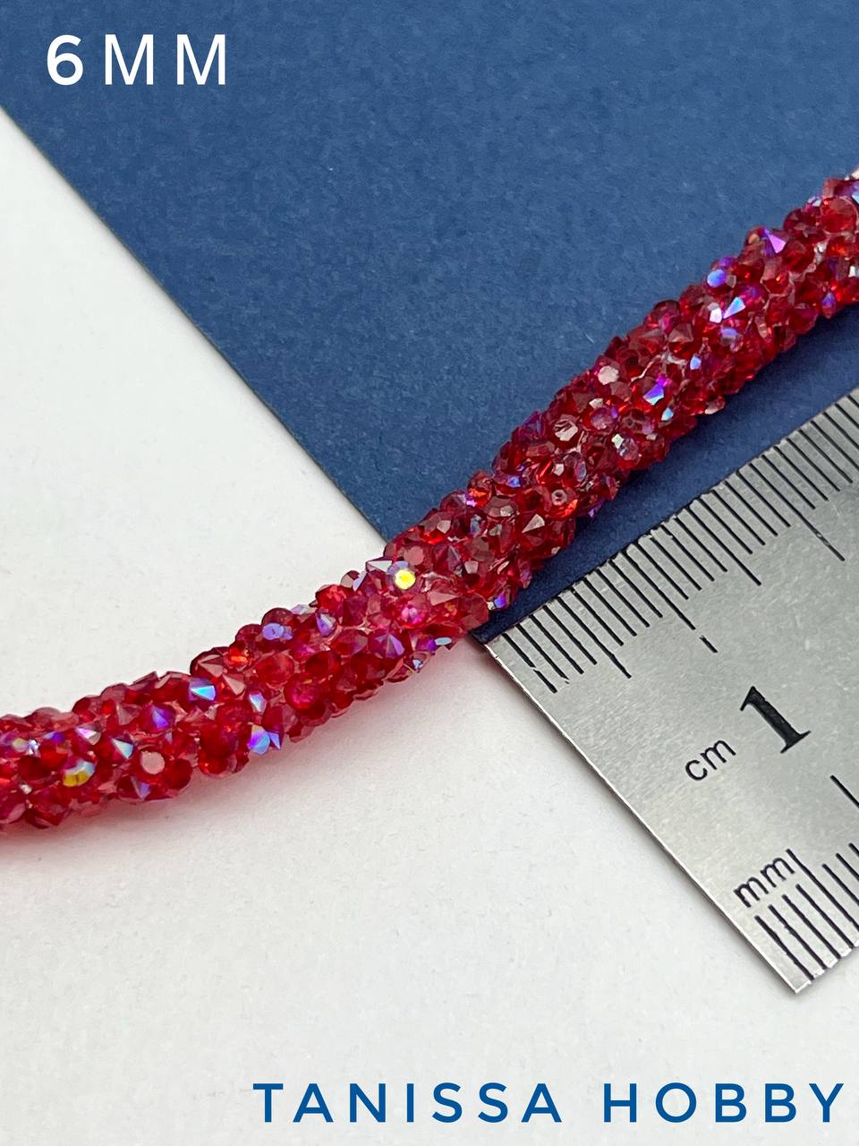 Стразовый шнур, красный АВ, 6мм, полый, 10СМ, Л74