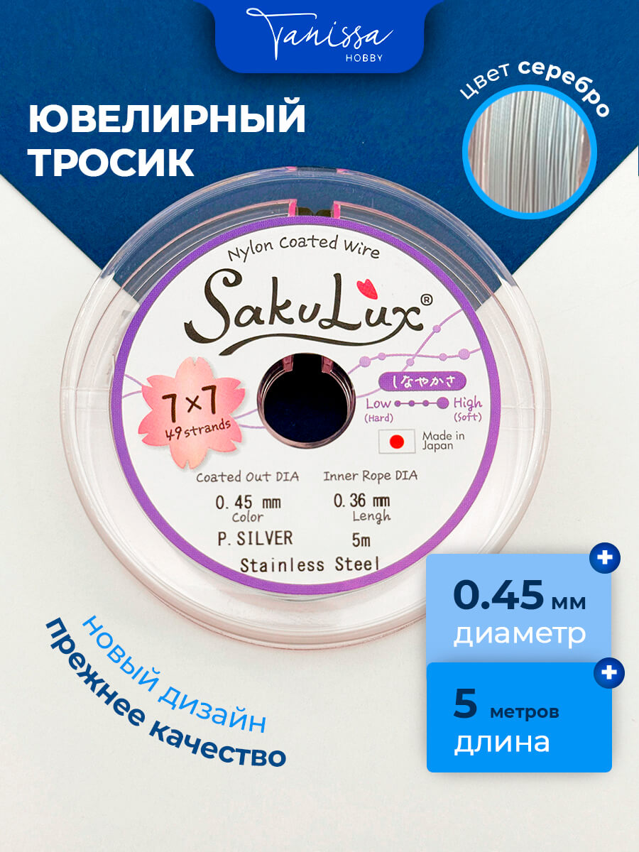 Представляем вам ювелирный тросик SakuLux Flexy с нейлоновым покрытием  - идеальная ланка для всех ваших нужд при изготовлении украшений! Этот ювелирный трос изготовлен в Японии известной компанией SakuLux Flexy, славящейся своими высококачественными материалами и вниманием к деталям.
