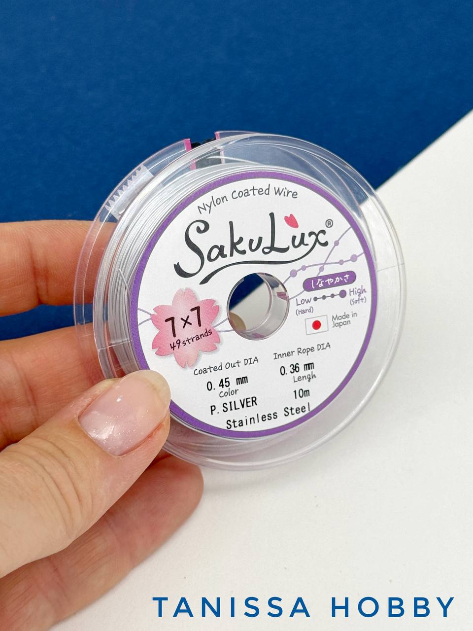 Представляем вам ювелирный тросик Sakulux Flexy с нейлоновым покрытием - идеальная ланка для всех ваших нужд при изготовлении украшений! Этот ювелирный трос изготовлен в Японии известной компанией Sakulux Flexy, славящейся своими высококачественными материалами и вниманием к деталям.
