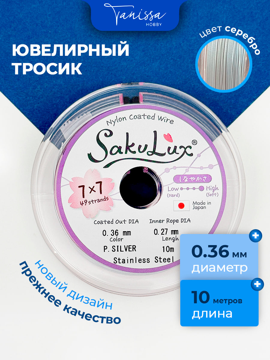 Представляем вам ювелирный тросик Sakulux  Flexy с нейлоновым покрытием  - идеальная ланка для всех ваших нужд при изготовлении украшений! Этот ювелирный трос изготовлен в Японии известной компанией Sakulux Flexy, славящейся своими высококачественными материалами и вниманием к деталям.