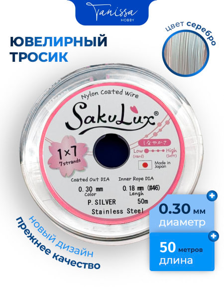 КАТУШКА 50метров Ювелирный тросик 0.3мм (ланка) SakuLux Flexy 7