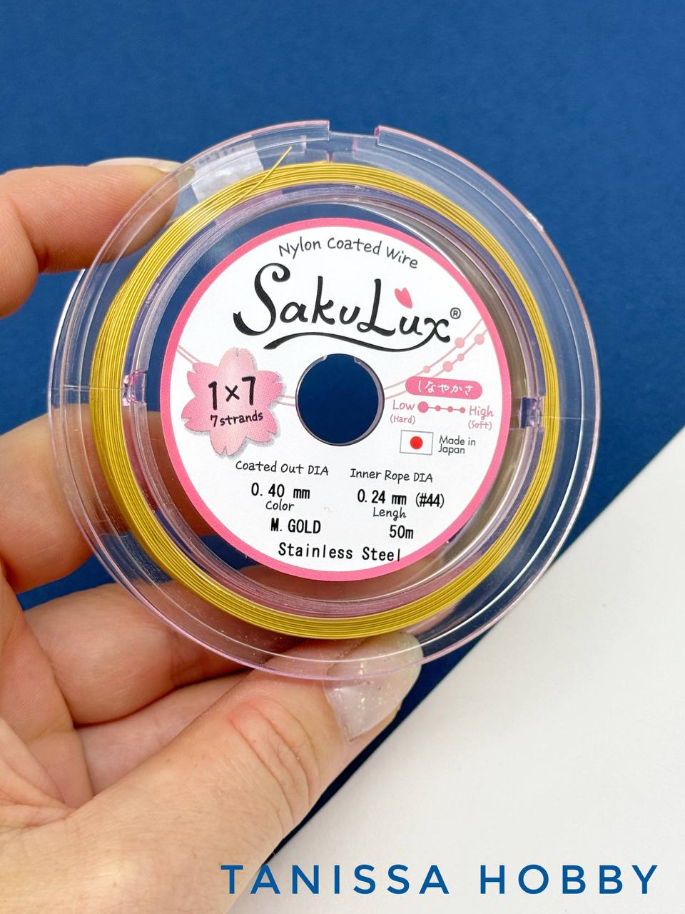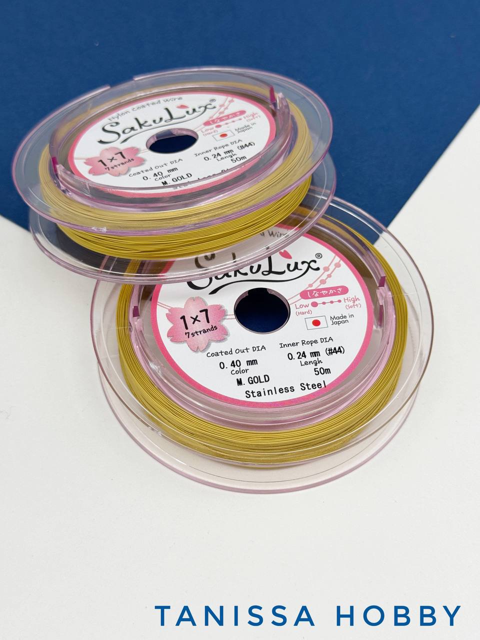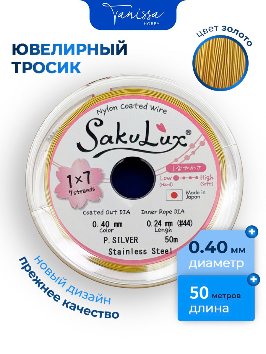 КАТУШКА 50 метров Ювелирный тросик золото 0,4мм (ланка) SakuLux Flexy 7. ПР93