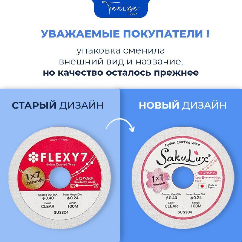 Представляем вам ювелирный тросик SakuLux Flexy с нейлоновым покрытием - идеальная ланка для всех ваших нужд при изготовлении украшений! Этот ювелирный трос изготовлен в Японии известной компанией SakuLux Flexy, славящейся своими высококачественными материалами и вниманием к деталям.