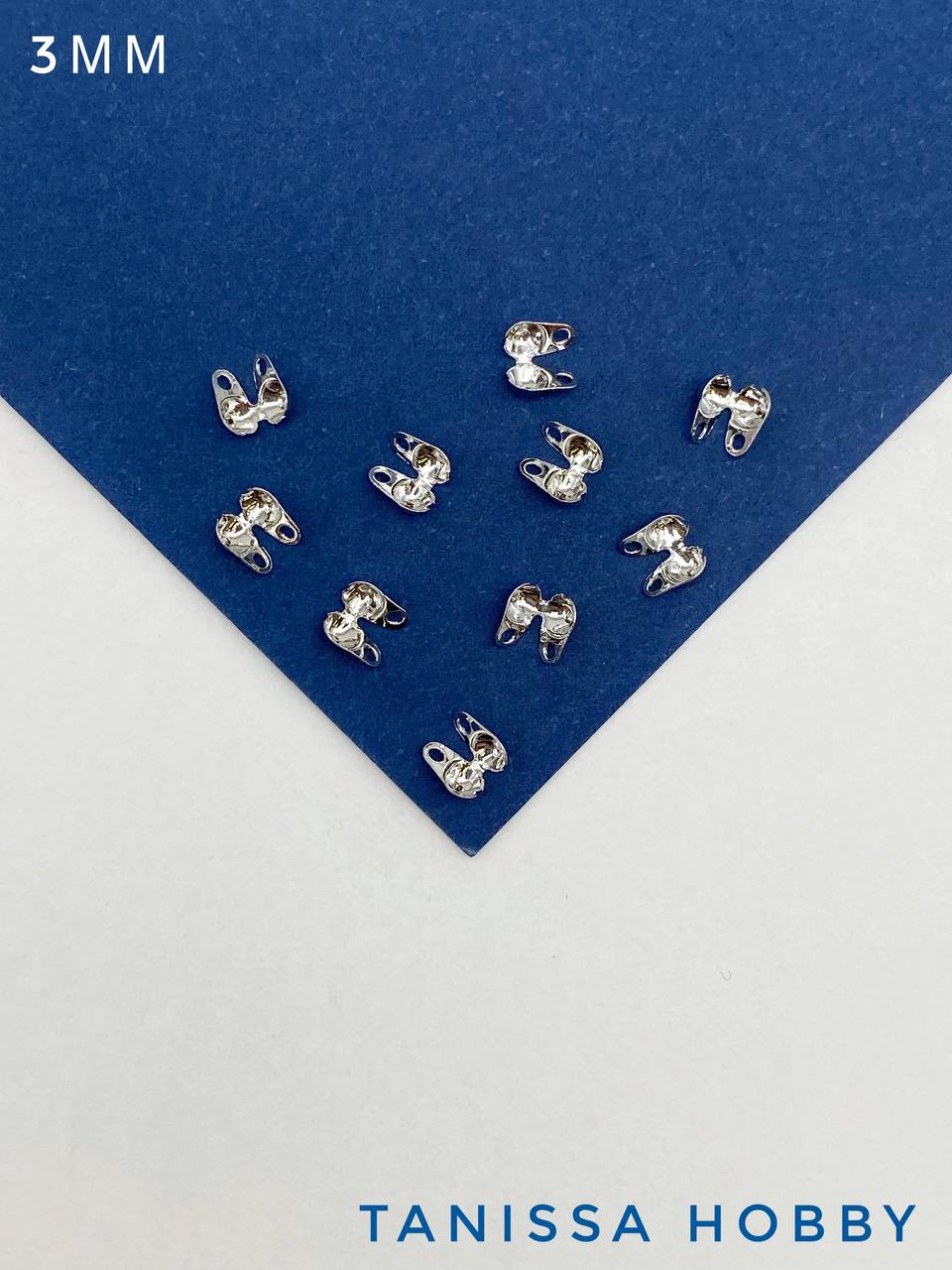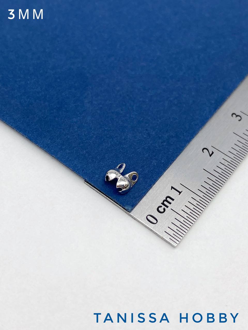 Каллоты 3 мм. Предназначены для маскировки кримпа или узелка. Латунь с родиевым покрытием.
