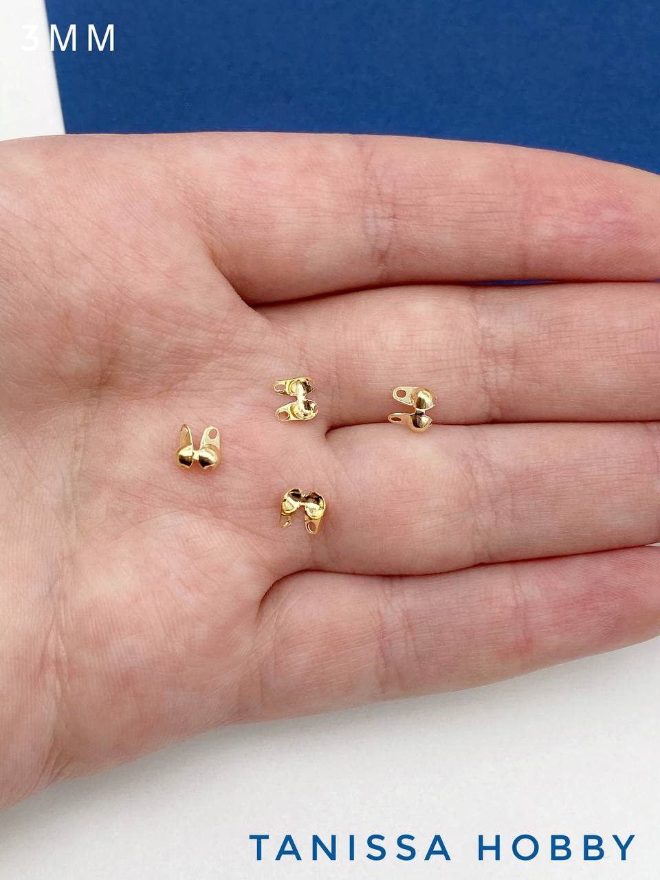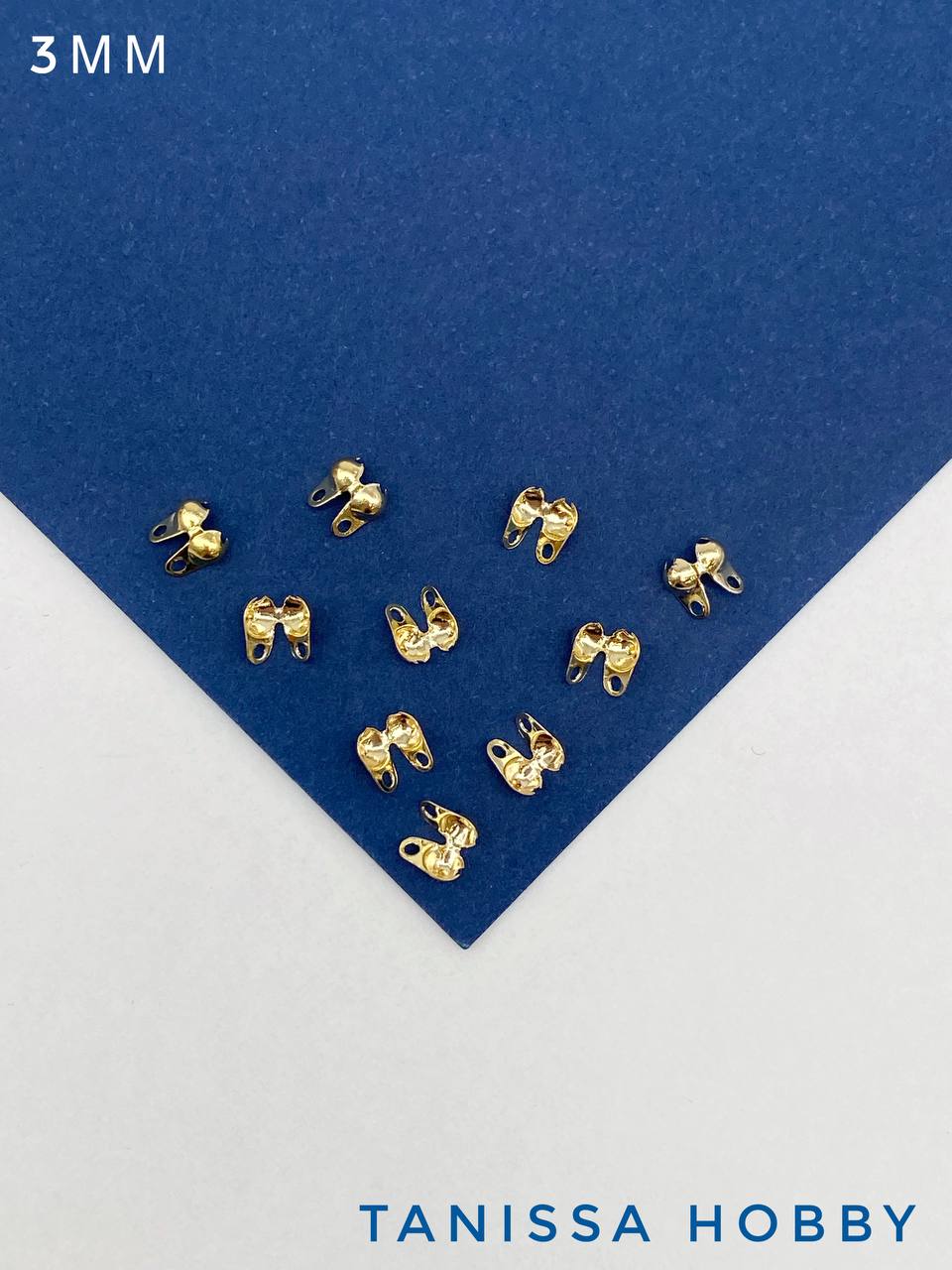 Каллоты 3 мм. Предназначены для маскировки кримпа или узелка. Латунь с родиевым покрытием.