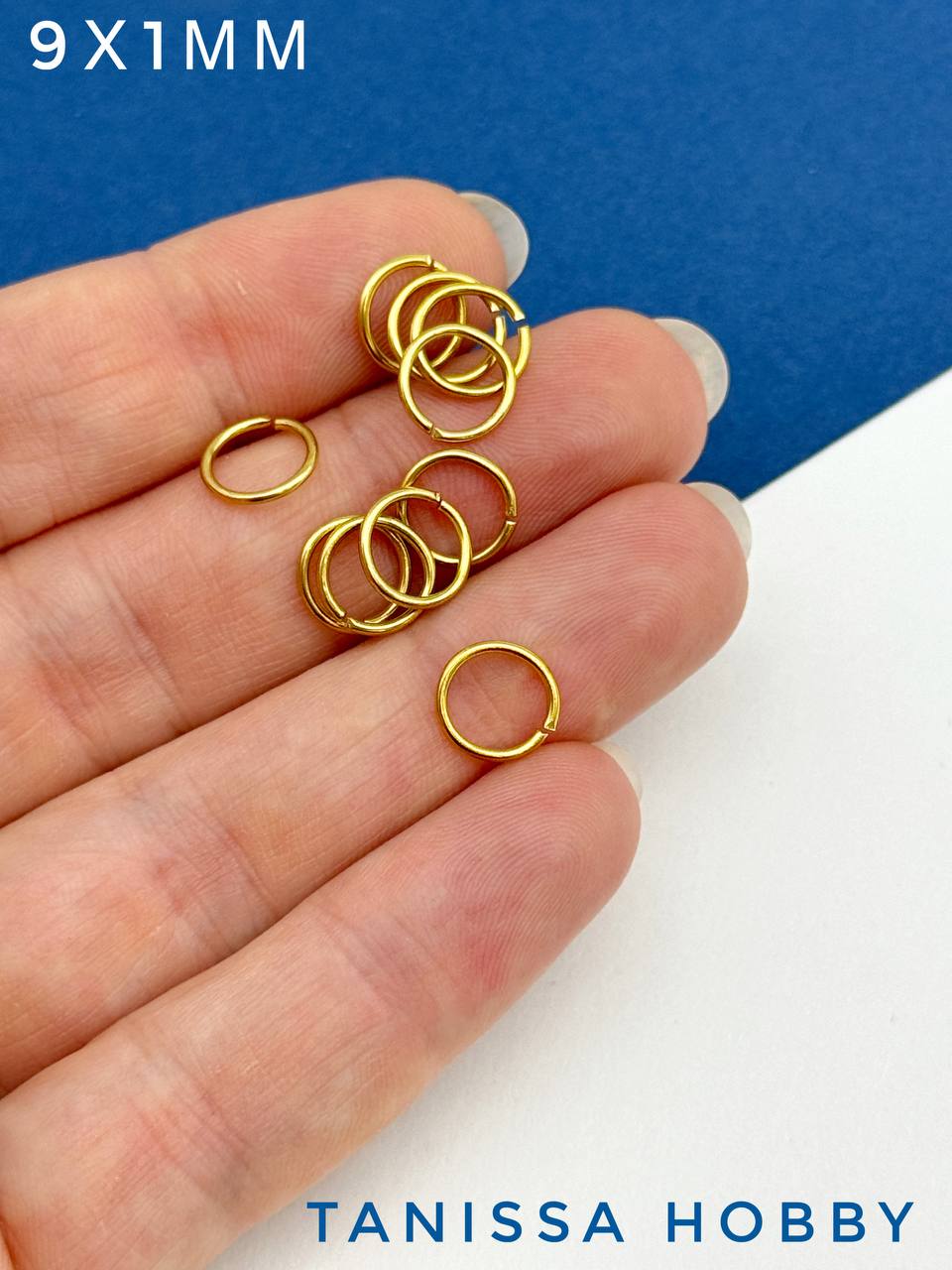 Соединительные колечки 9мм толщина 1, сталь, позолота, Ч411