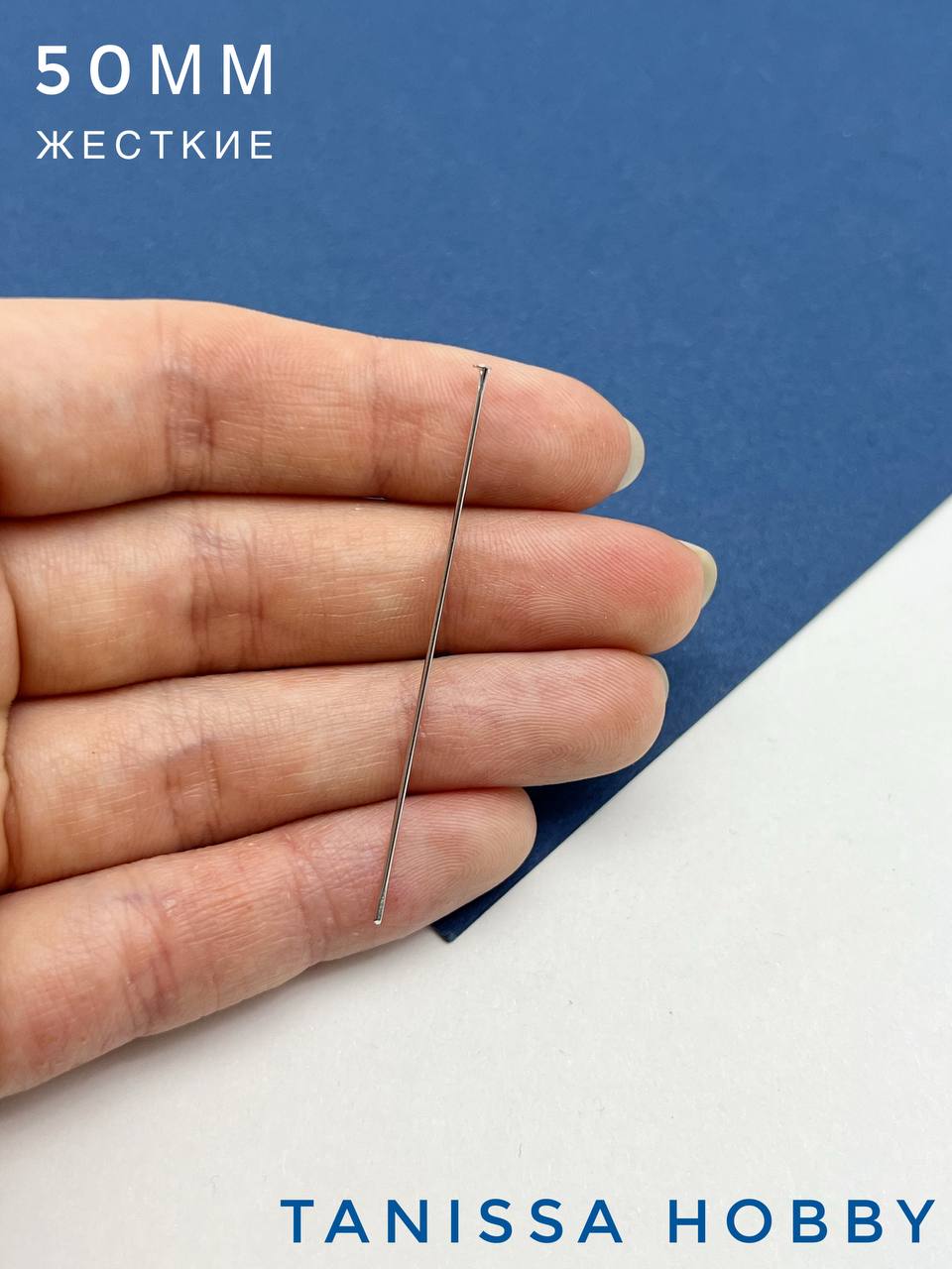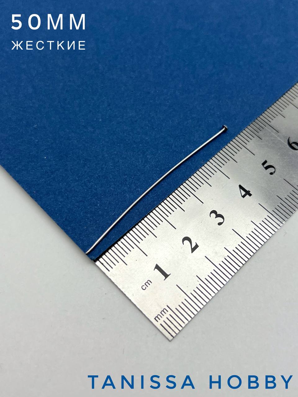 Пины 50мм с шляпкой, средне жесткие, родий, 10шт. М107