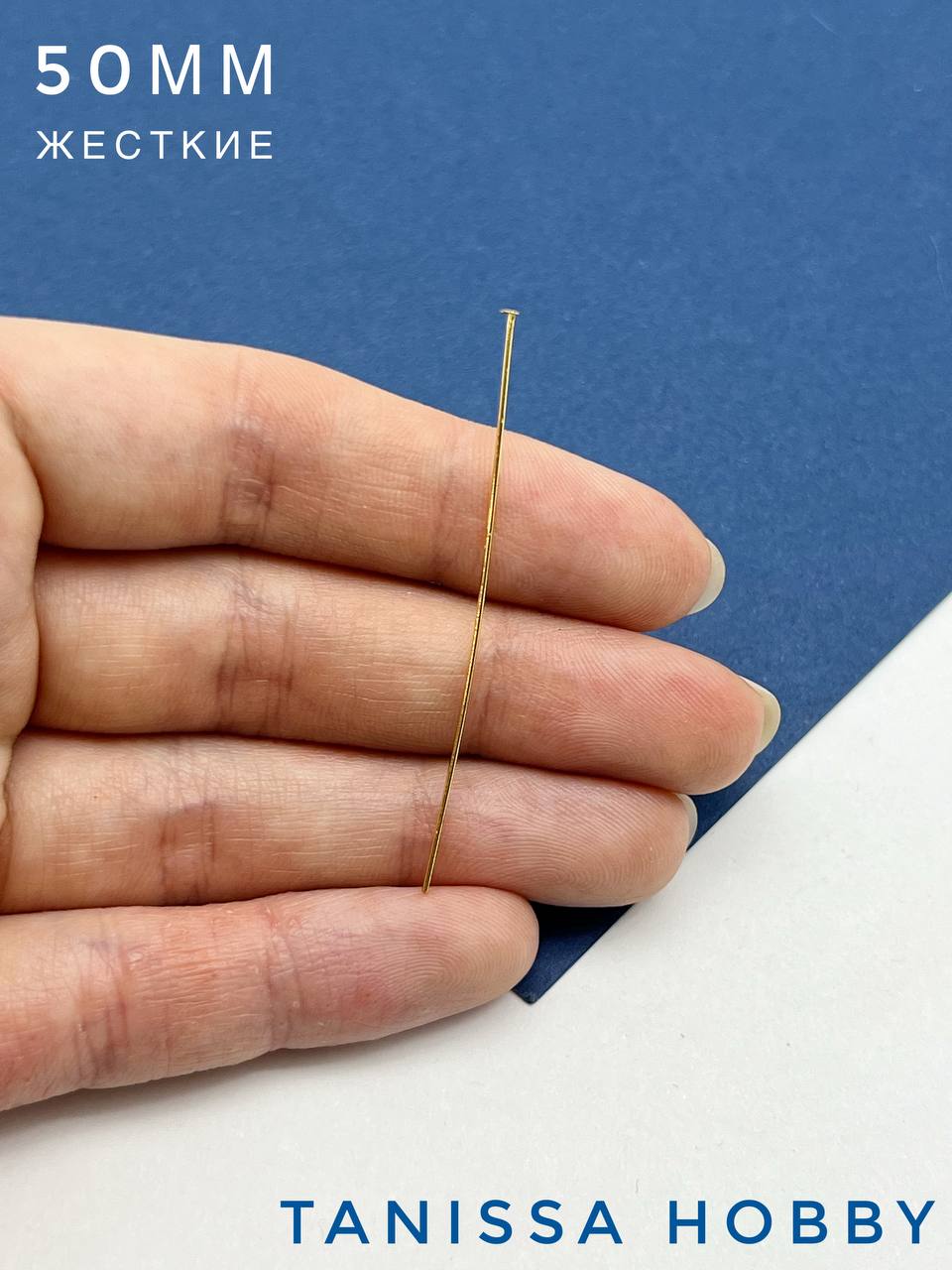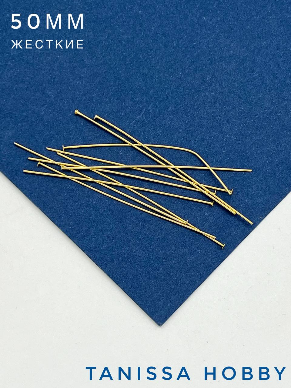 Пины 50мм с шляпкой, средне жесткие, позолота, 10шт. М110