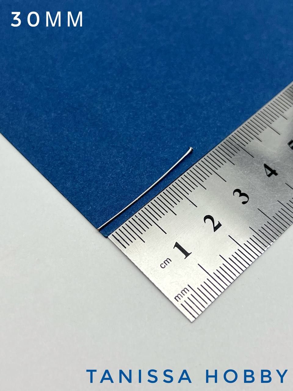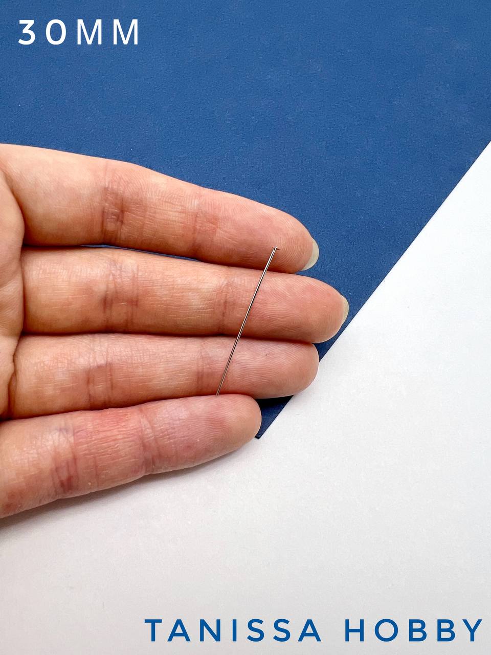 Пины 30мм со шляпкой средне жесткие, родий. Ю.Корея. М202