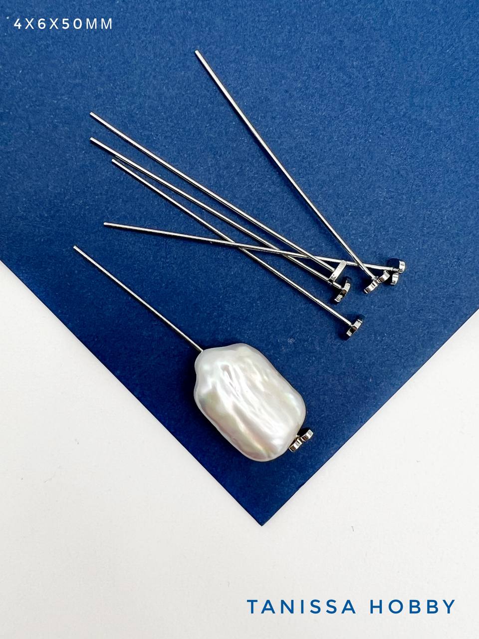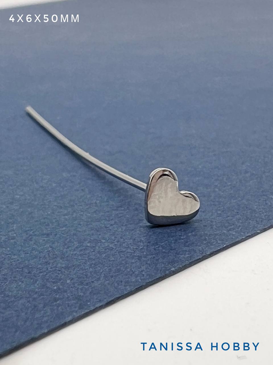 Пин жесткий 50мм сердце, родий, ШТУКА, К821