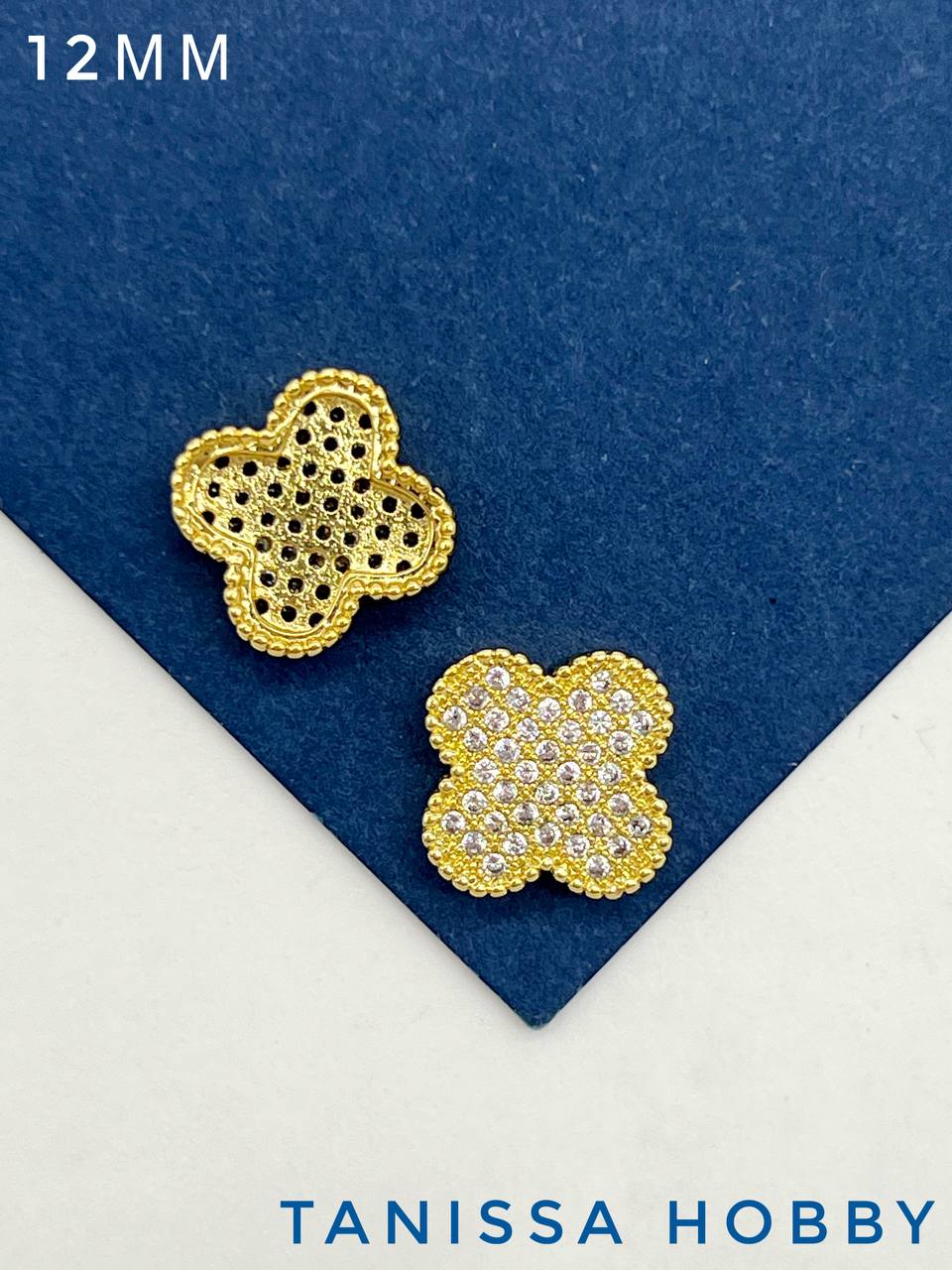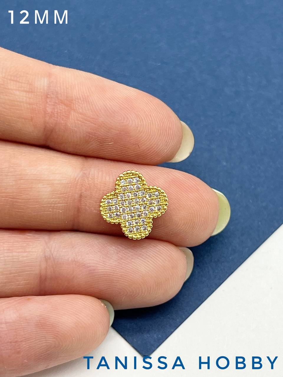 Разделитель клевер с фианитами, 12мм, позолота, С133