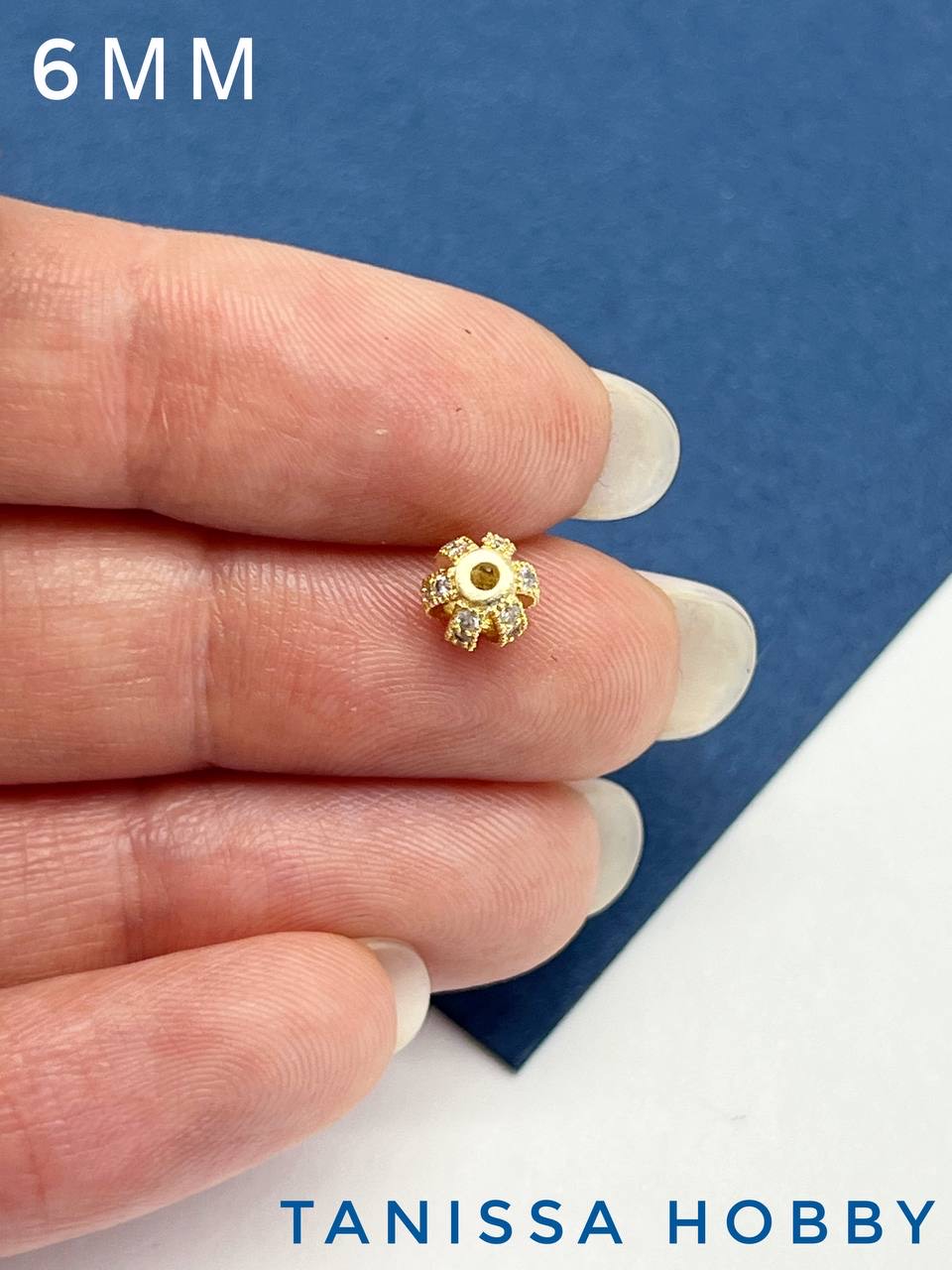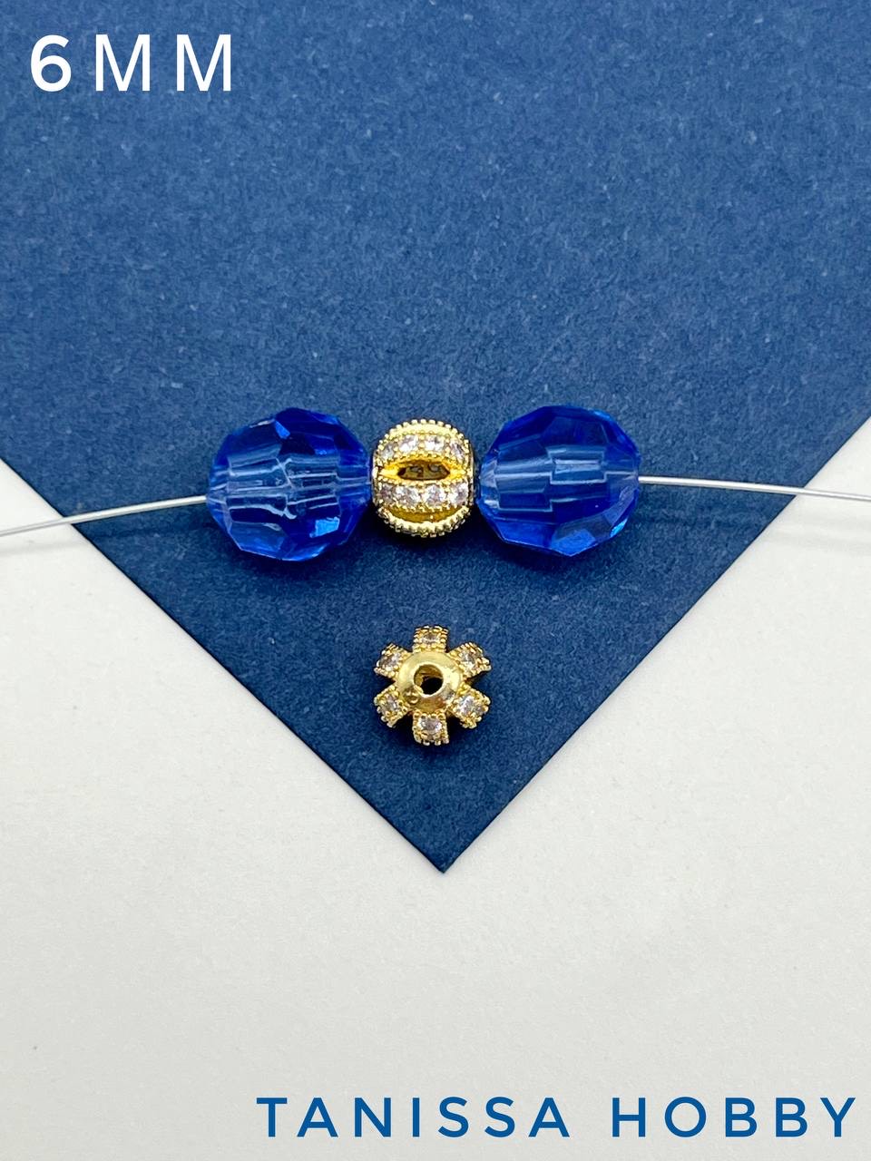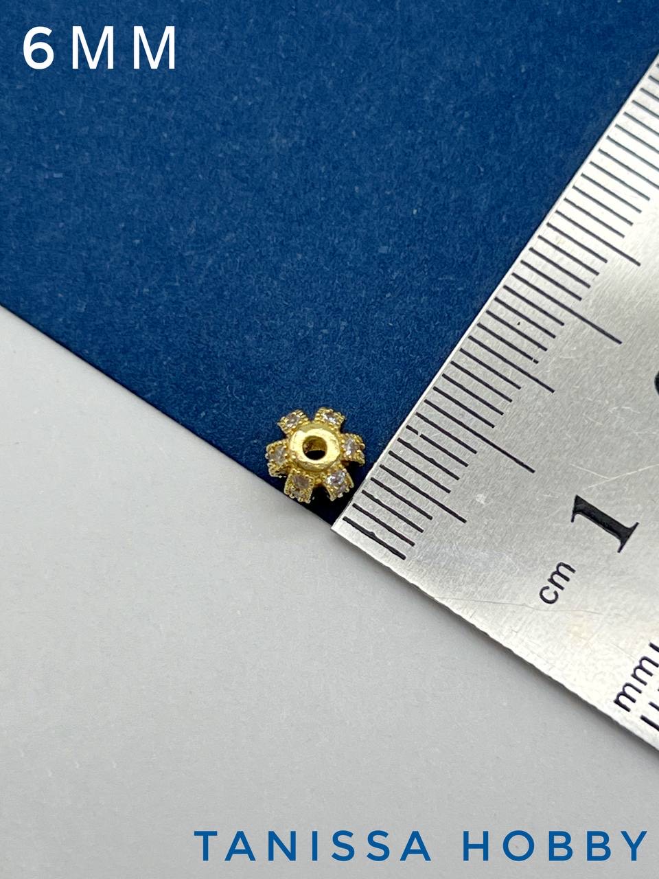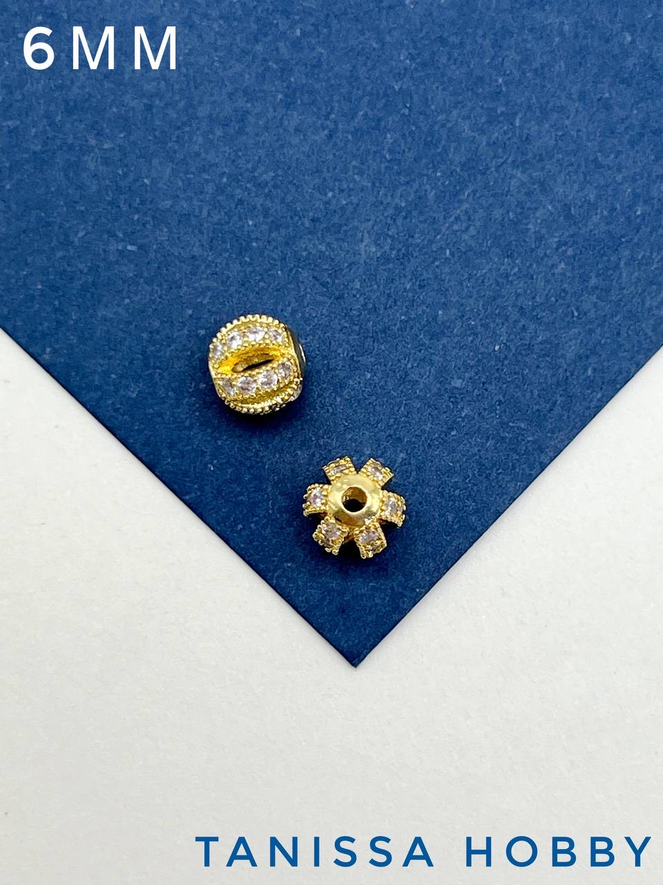 Бусина разделительная 6мм, с фианитами, позолота, Р336