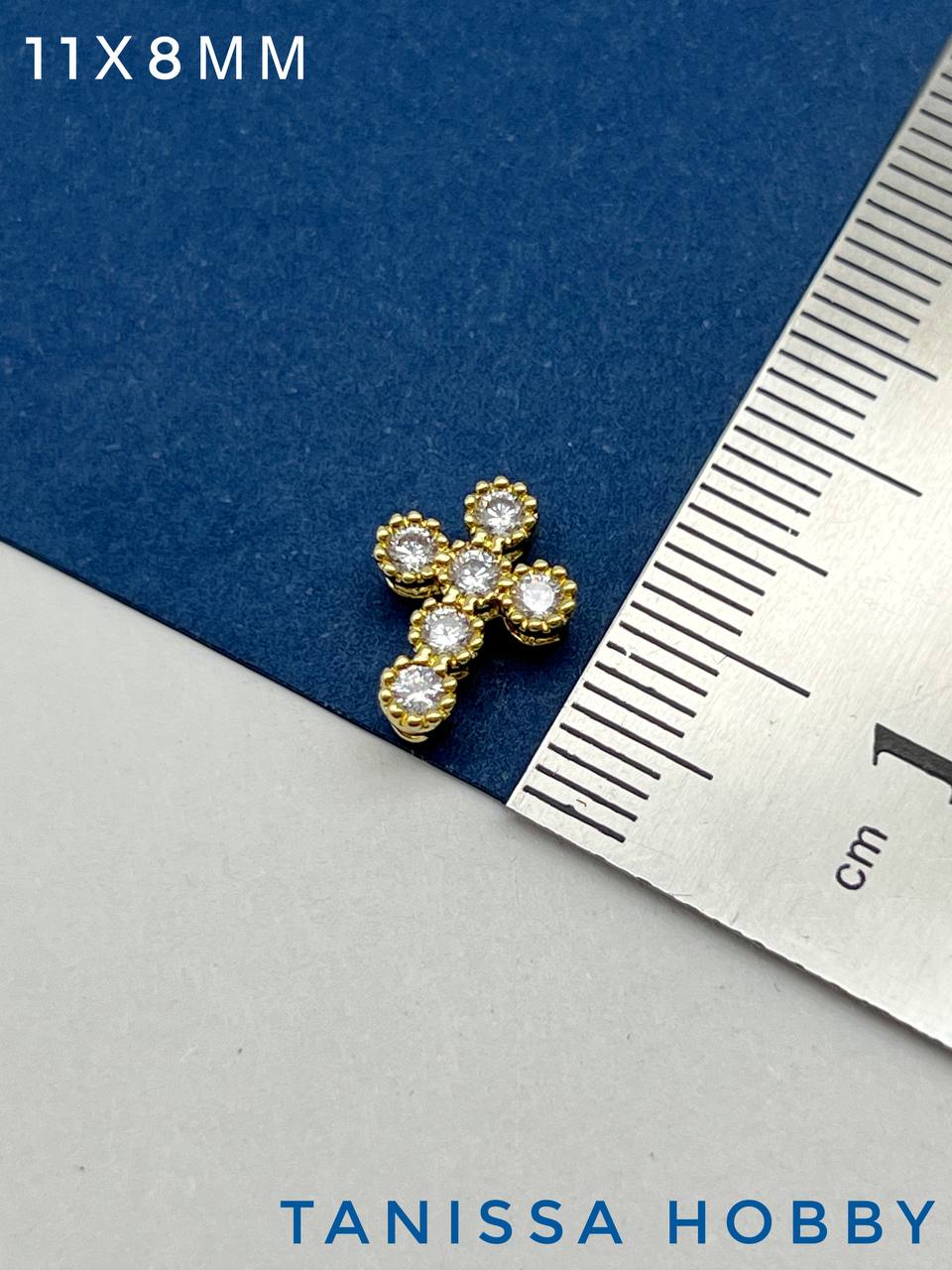 Бусина разделительная, крест с фианитами, позолота, С236