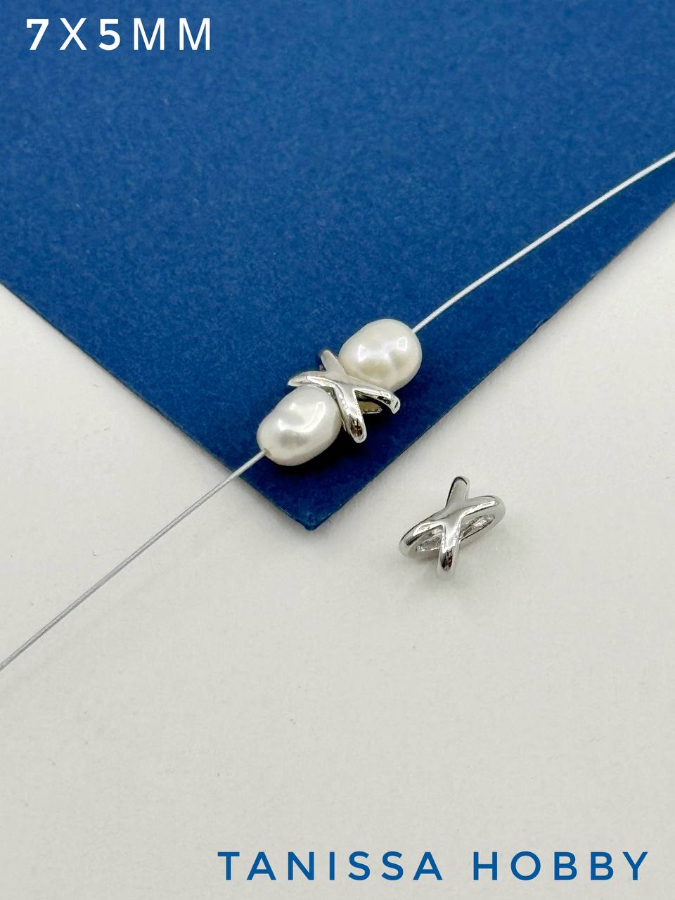 -Бусина разделительная икс Х, 7х5мм, родий, М418