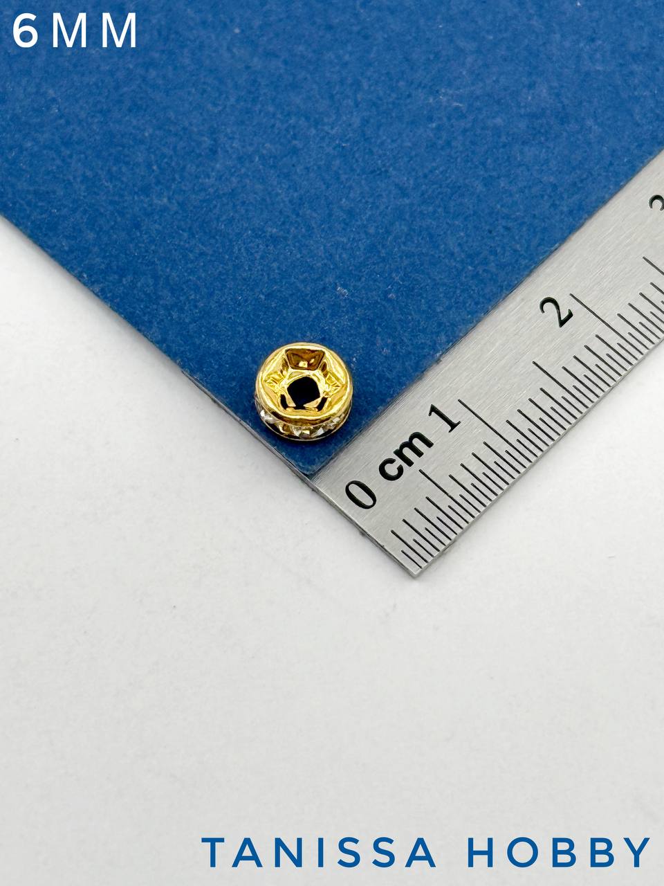 Разделители для бусин шайба с фианитами, 6мм, позолота, ШТУКА, Ю623