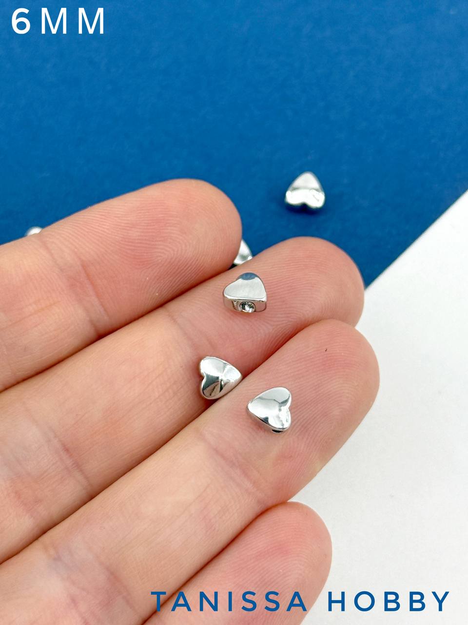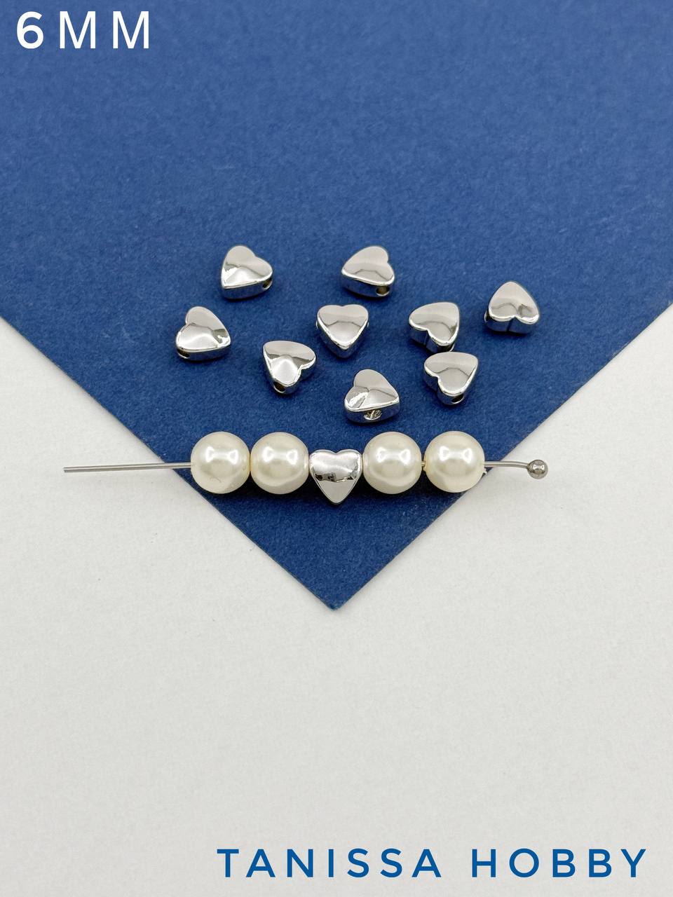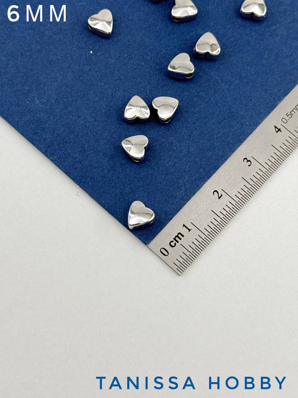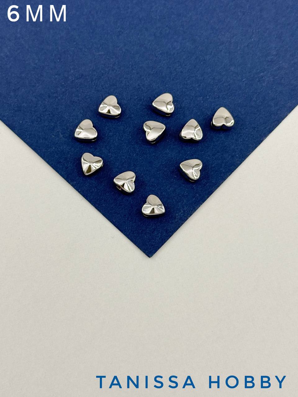 Разделители бусины сердце 6мм, родий, 10 штук, ОПТ026