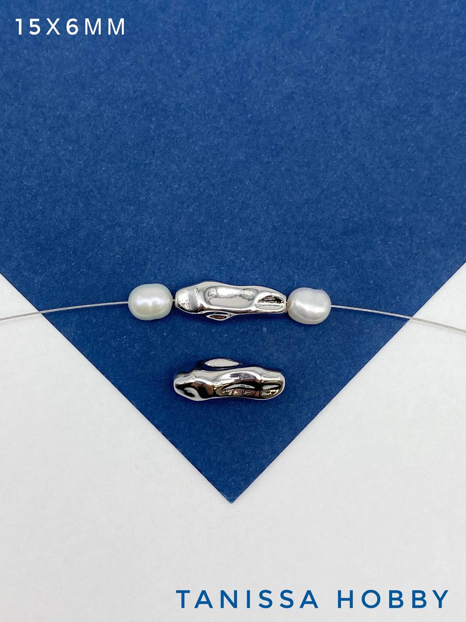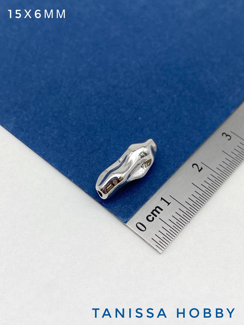 Разделитель бусина мятая трубочка, 15х6мм, родий, Р813