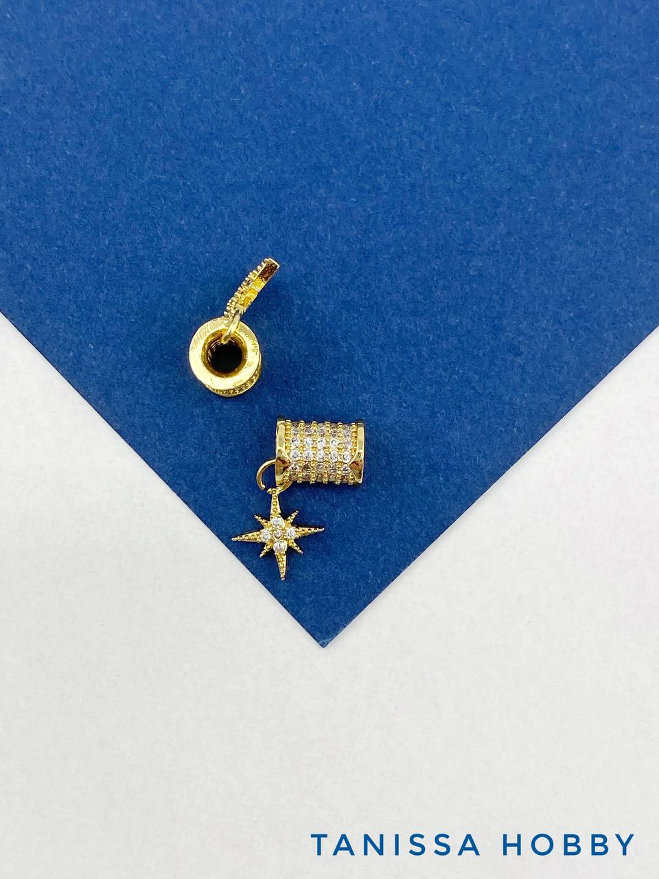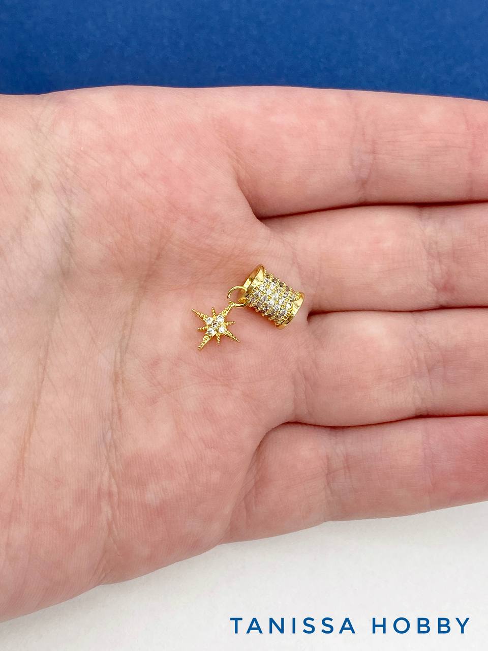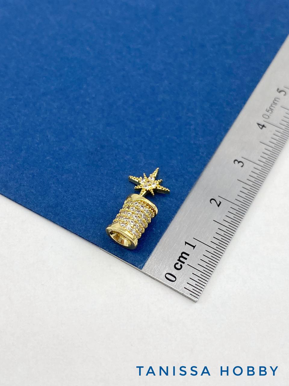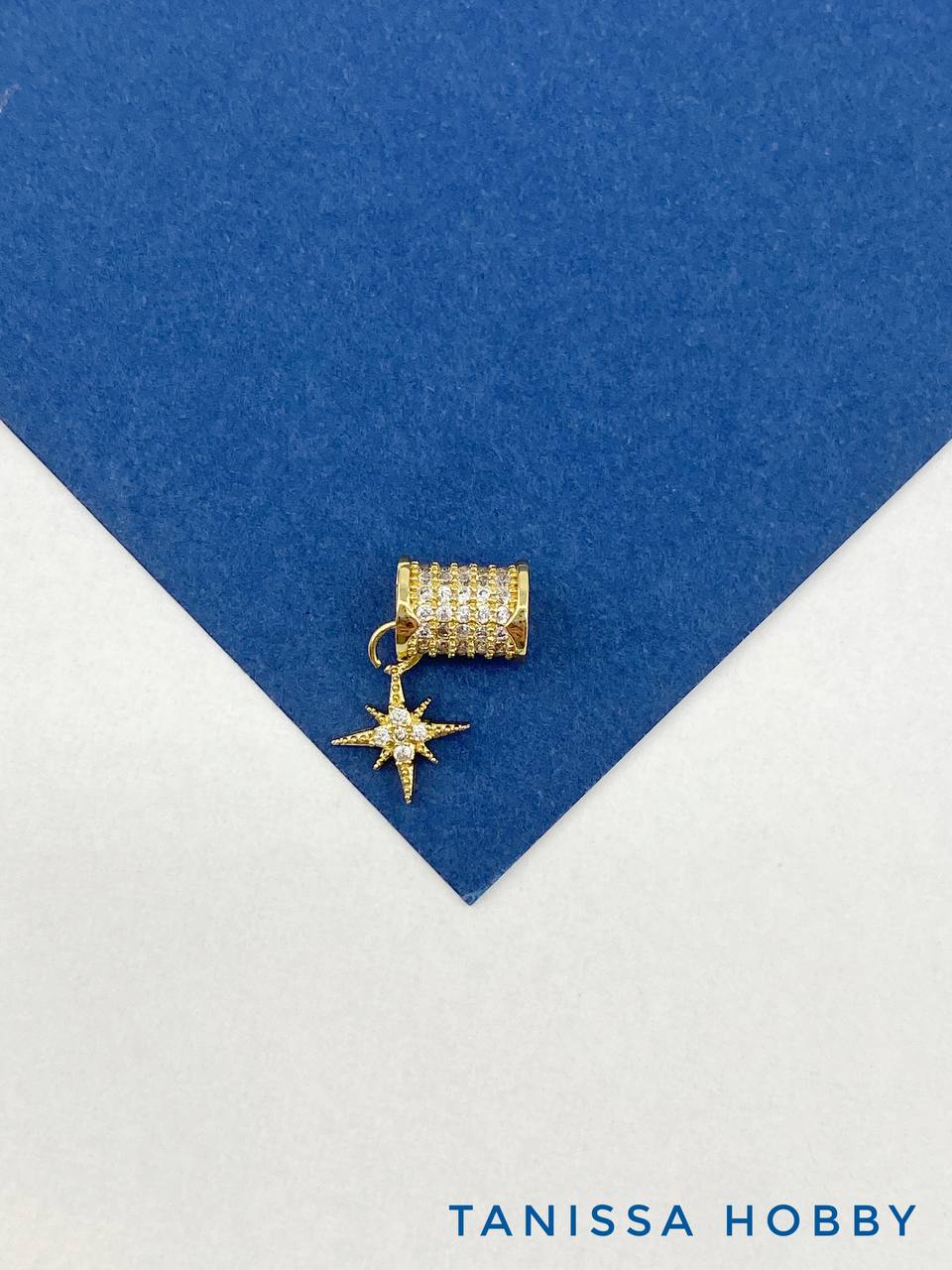 -Разделитель бусина шарм звезда с фианитами 8х6мм, позолота, С835