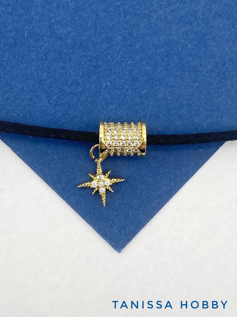 • Шарм для браслета разделитель звезда 12мм, под шнур 5х3мм, позолота, Ш131