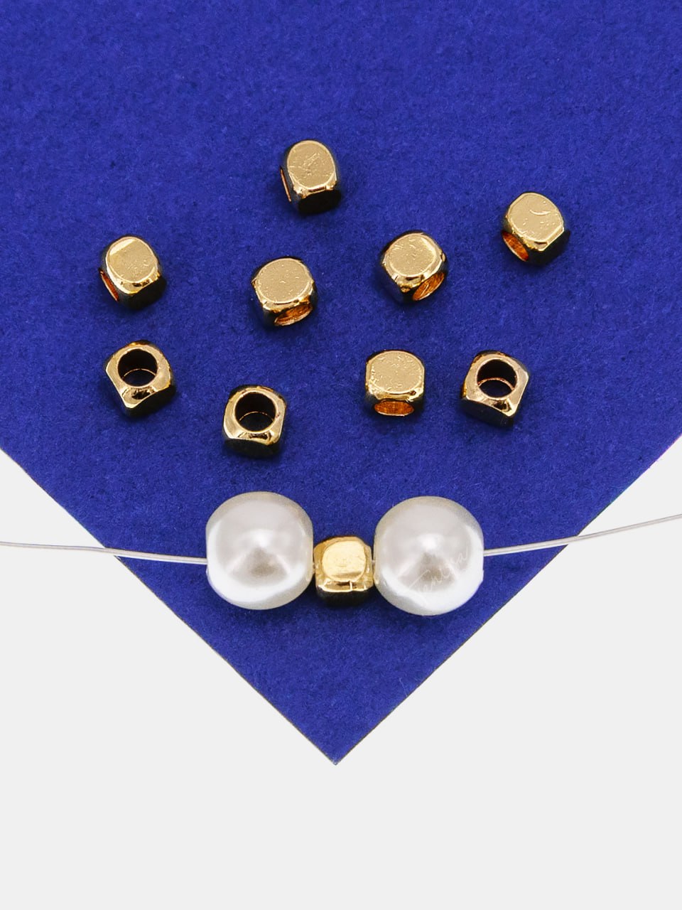 -Разделительные бусины, куб, 3мм, позолота, 10 шт, РА122