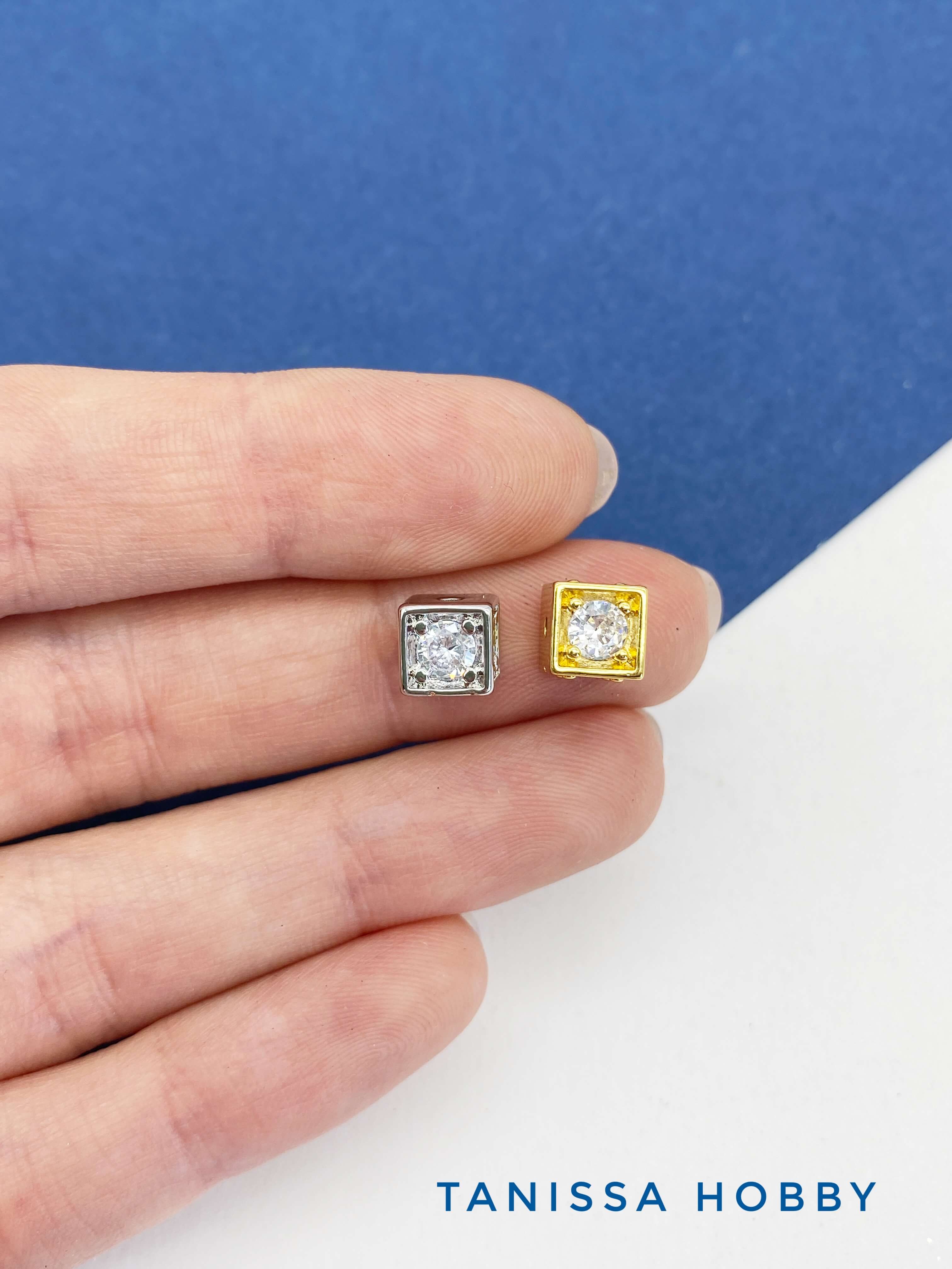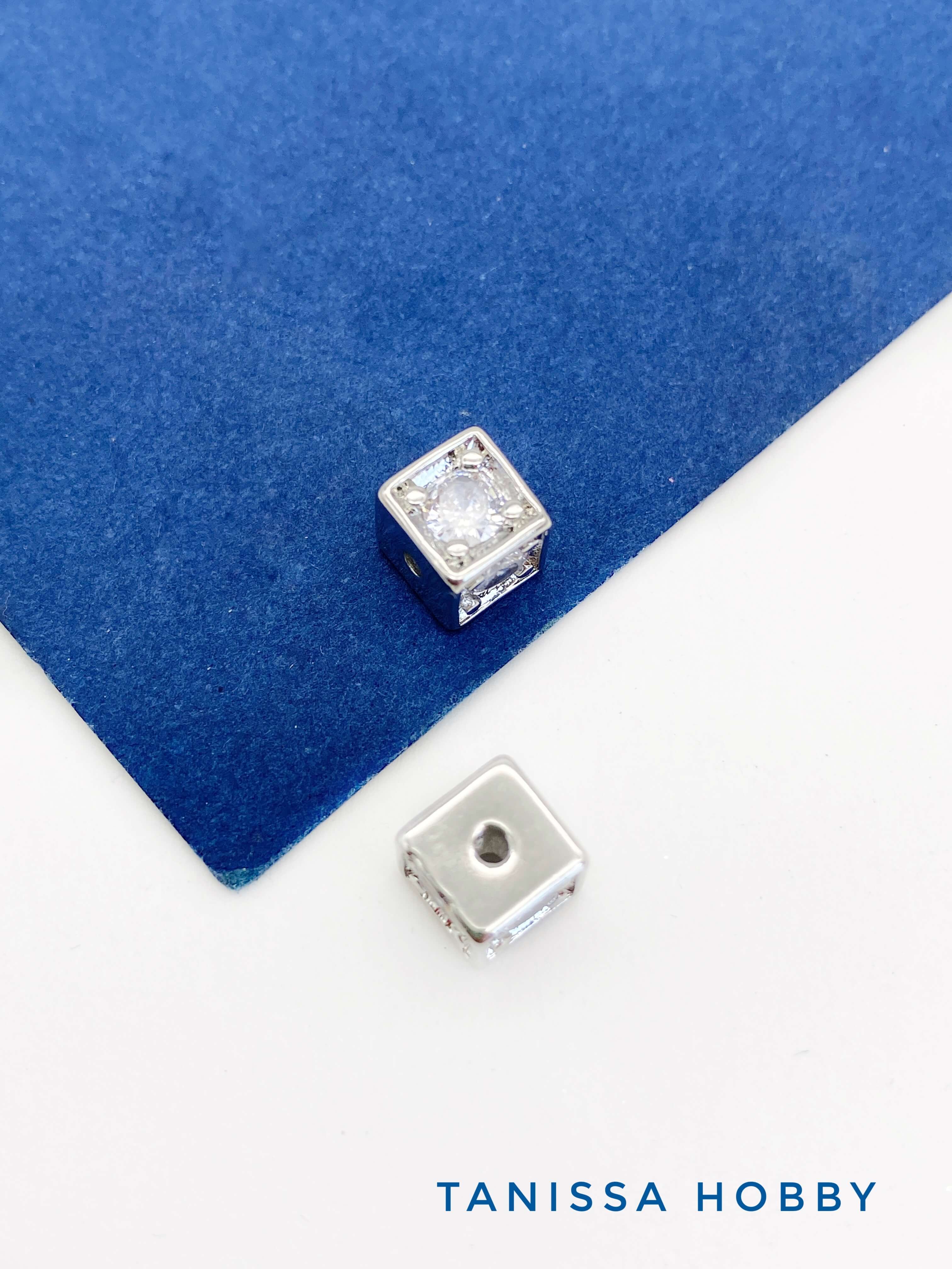 Разделители бусины куб 6мм, ШТУКА, родий. С603