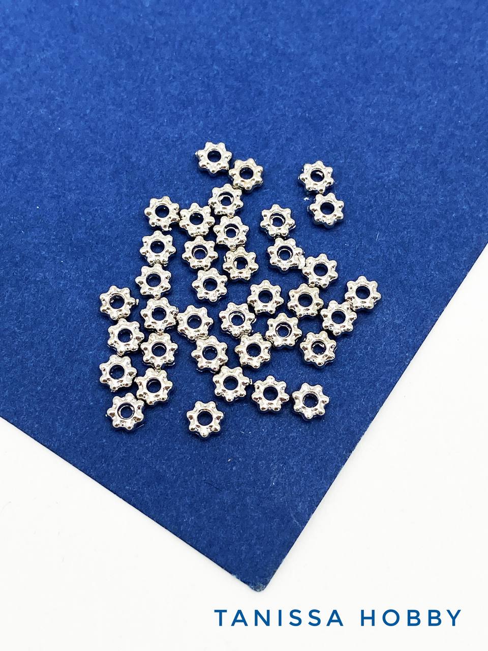 Разделители бусины цветок 4мм, ШТУКА, родий, С826