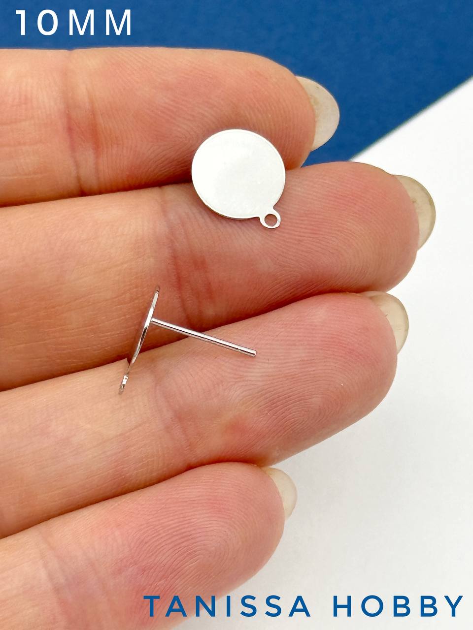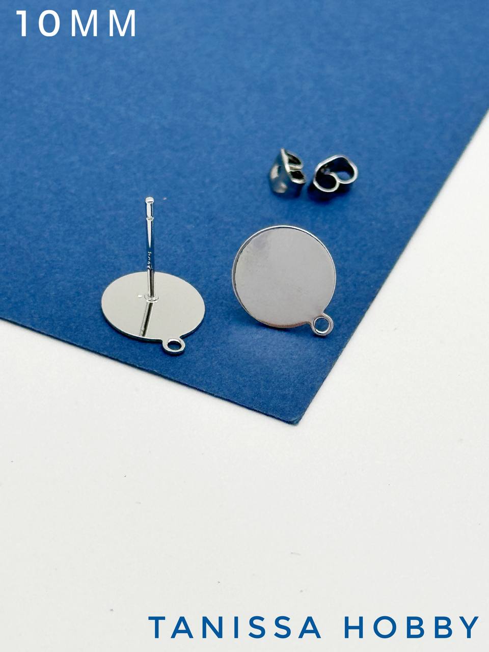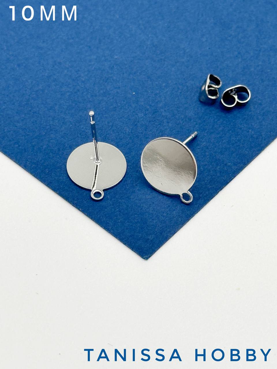 Швензы пусеты 10мм, основы для вклейки, родий, Е303