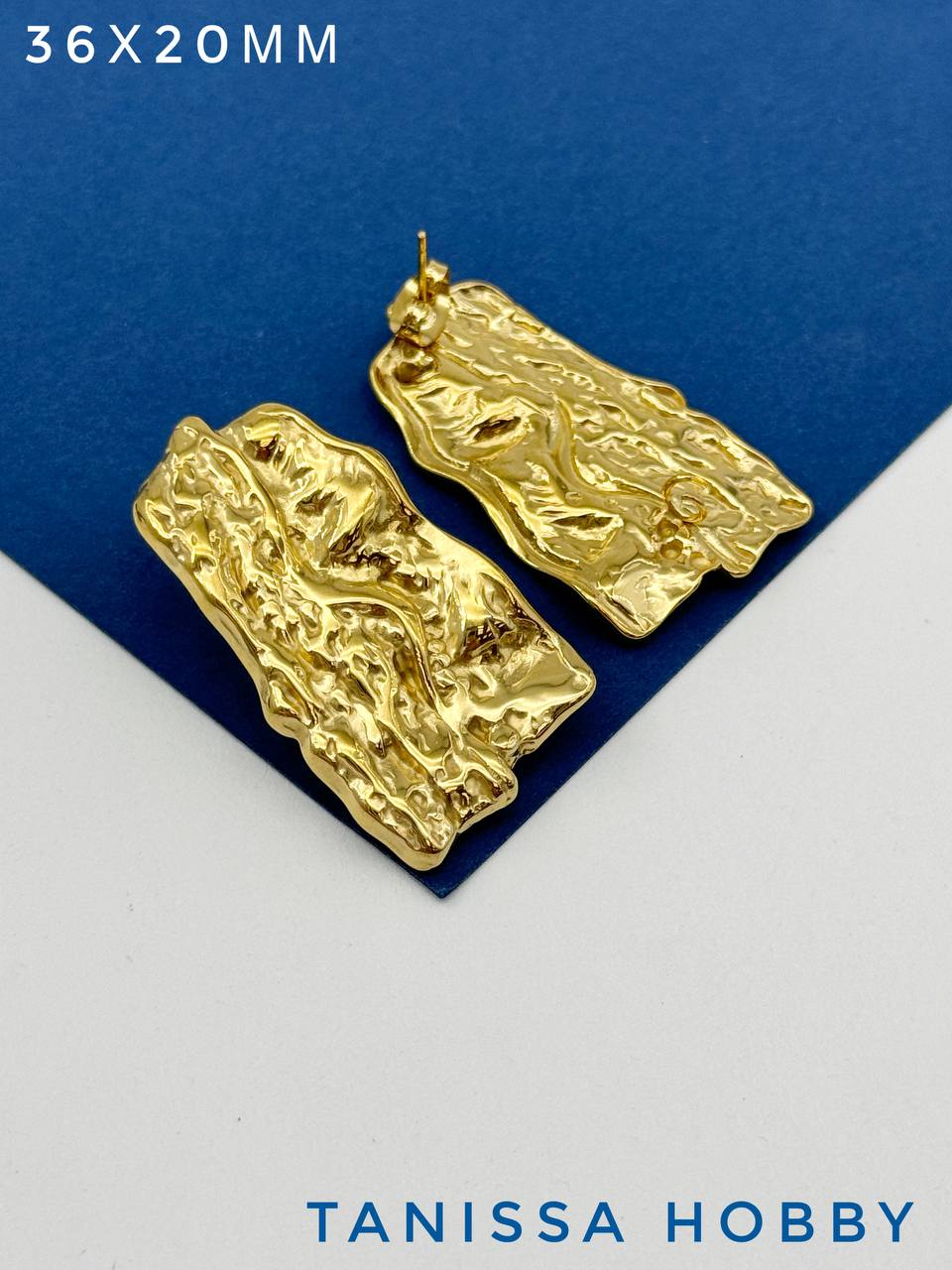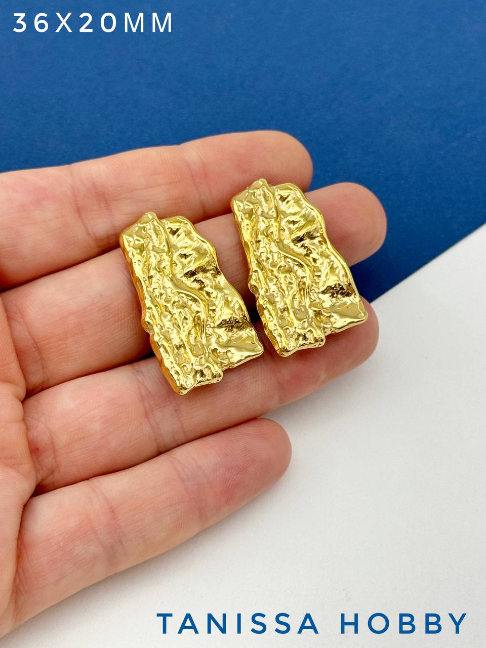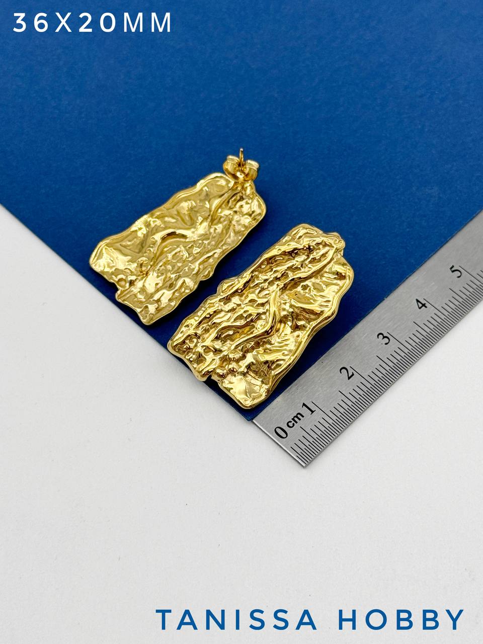 Швензы пусеты мятый металл, сталь, позолота Ч908