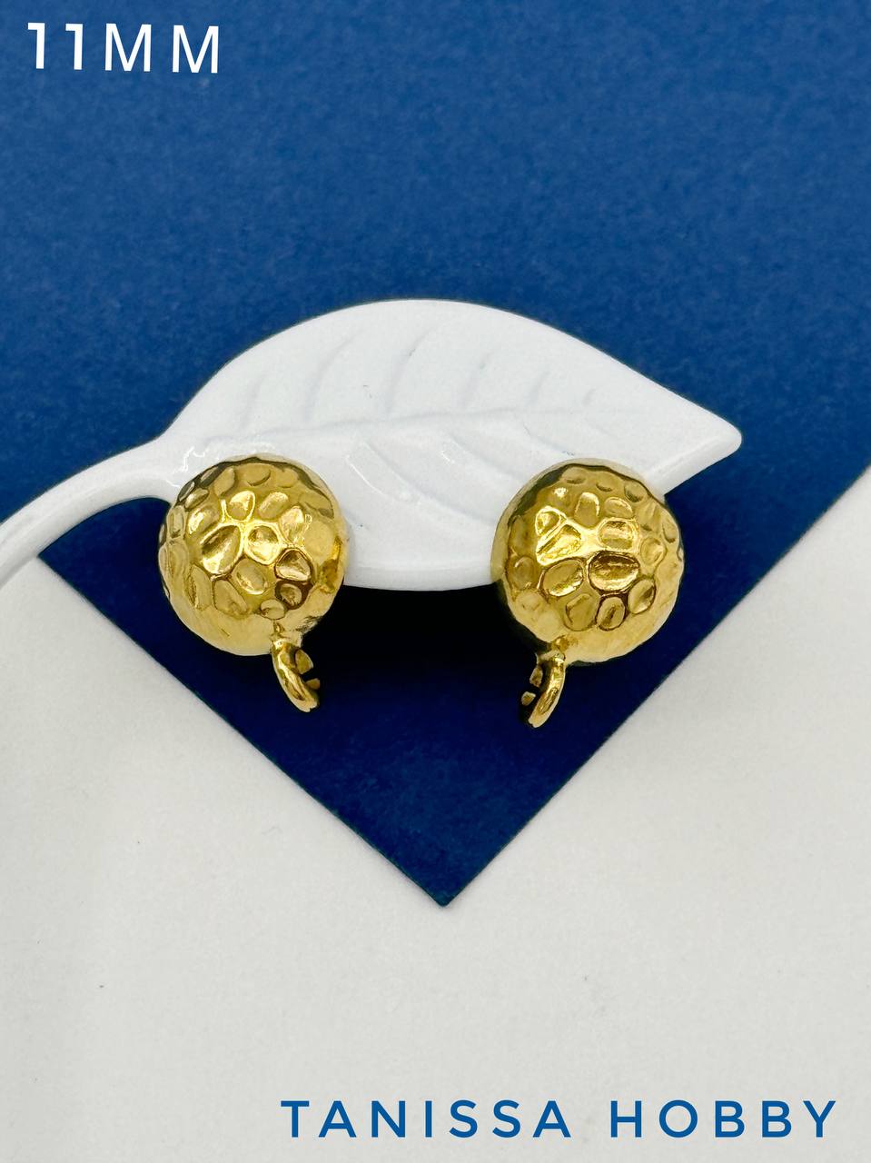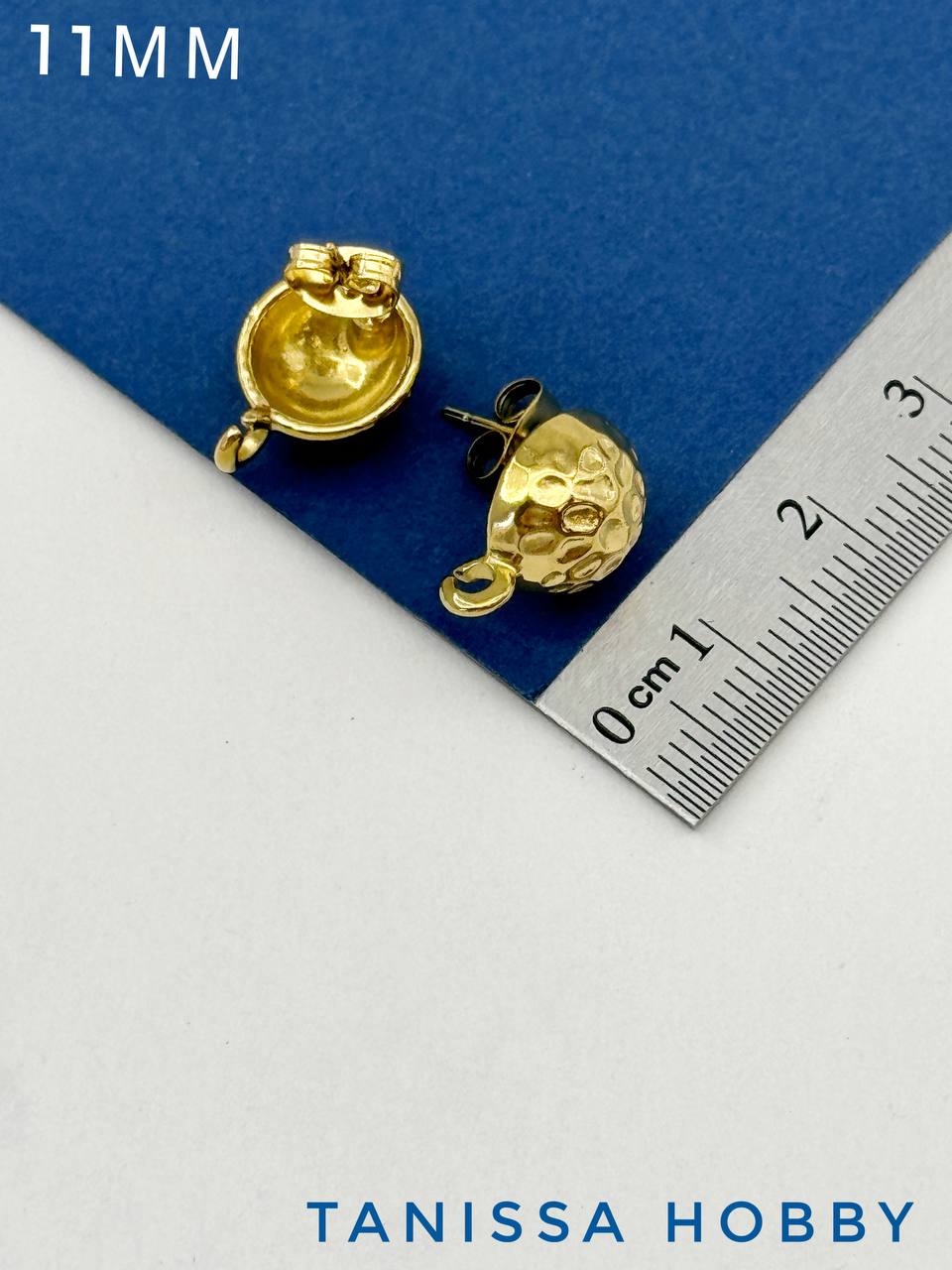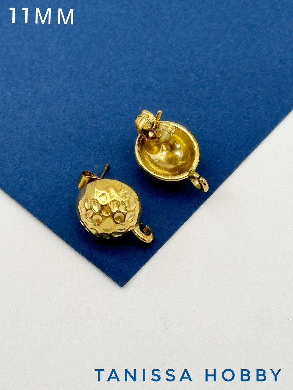 Швензы пусеты круг 11мм мятый металл, сталь, позолота, Ч909