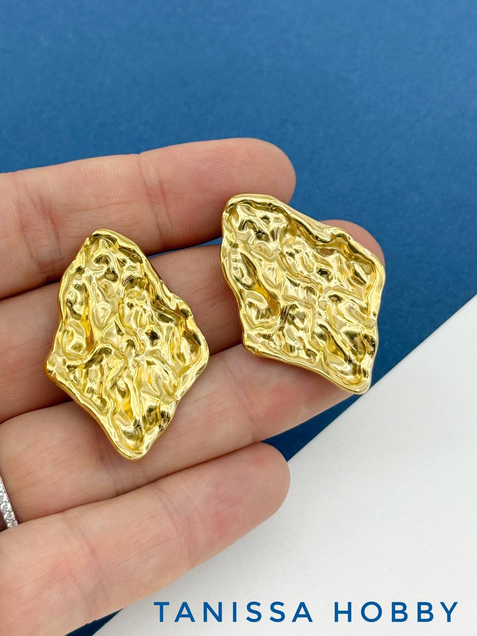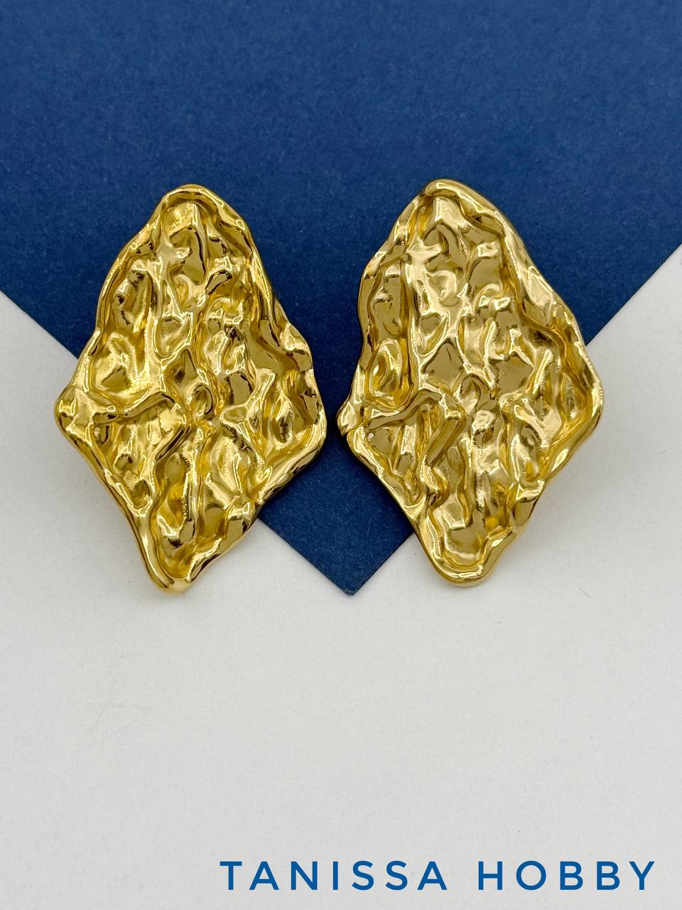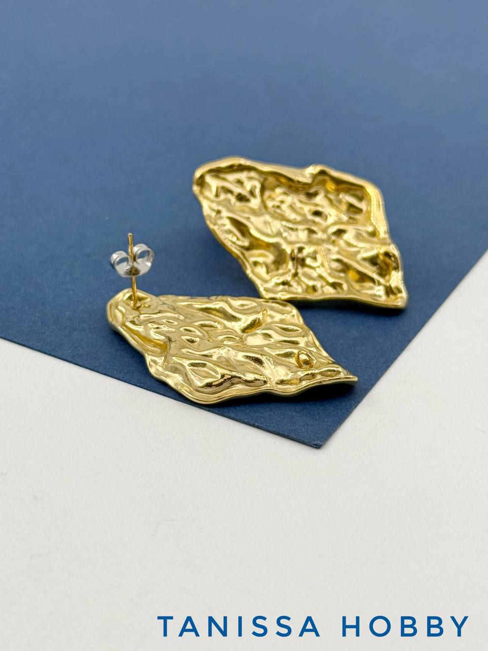 Швензы пусеты ромб мятый металл, сталь, позолота, 532