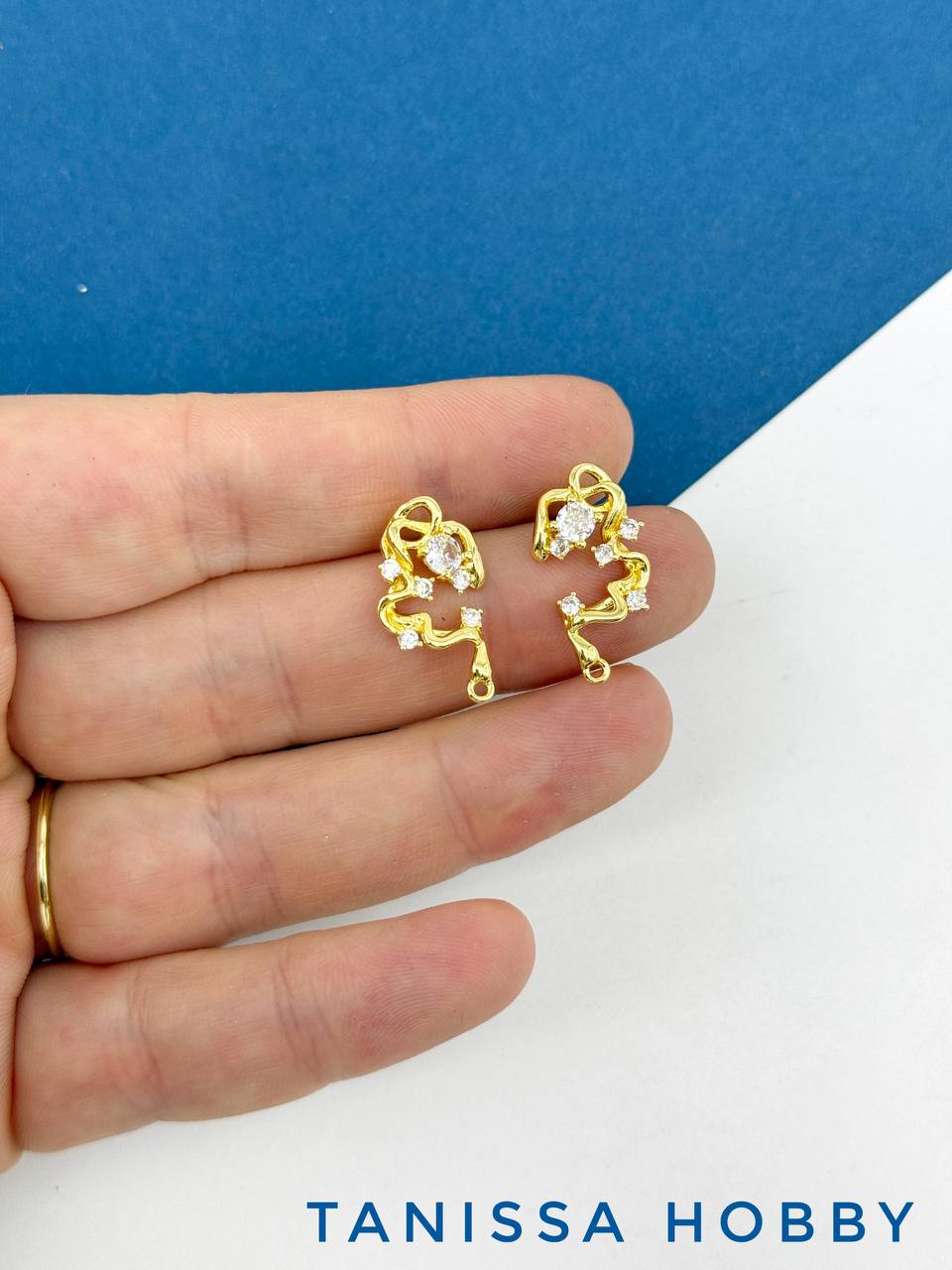 Швензы пусеты с фианитами, позолота, 534