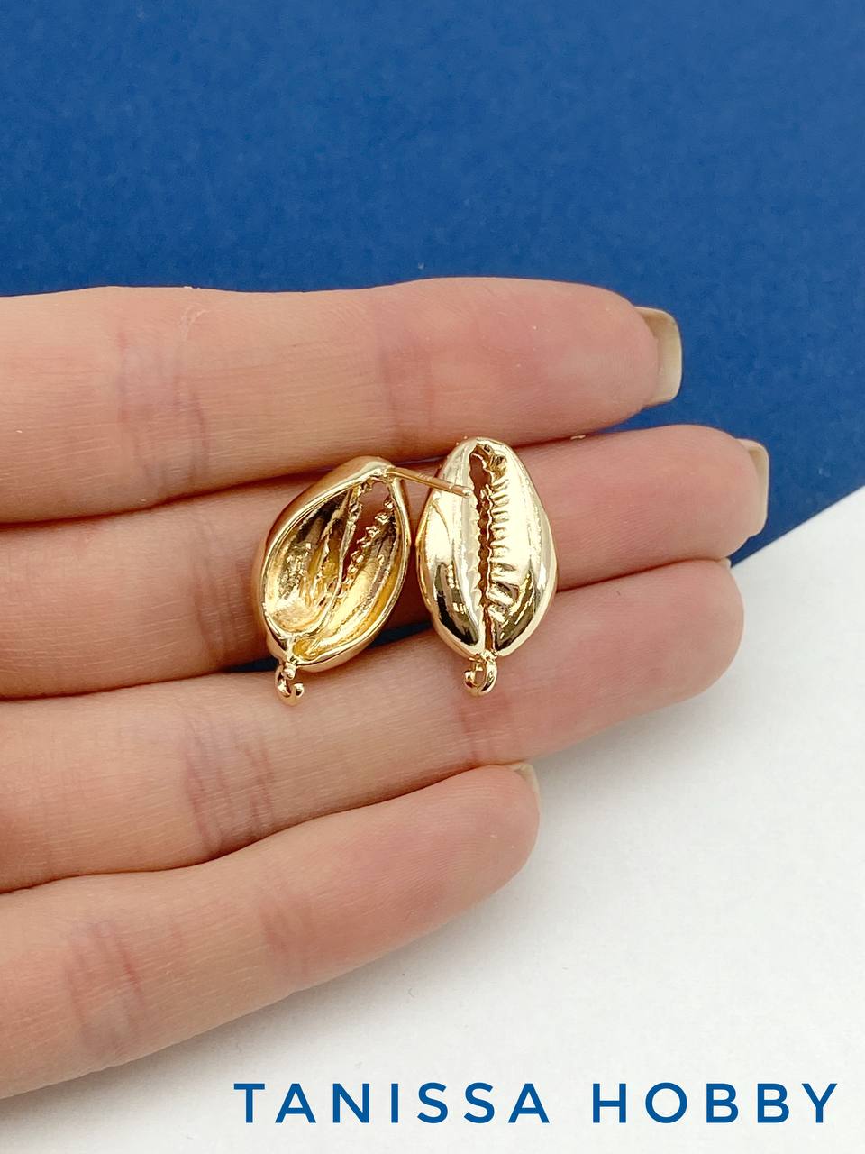 Швензы пусеты ракушка каури, позолота, Е604