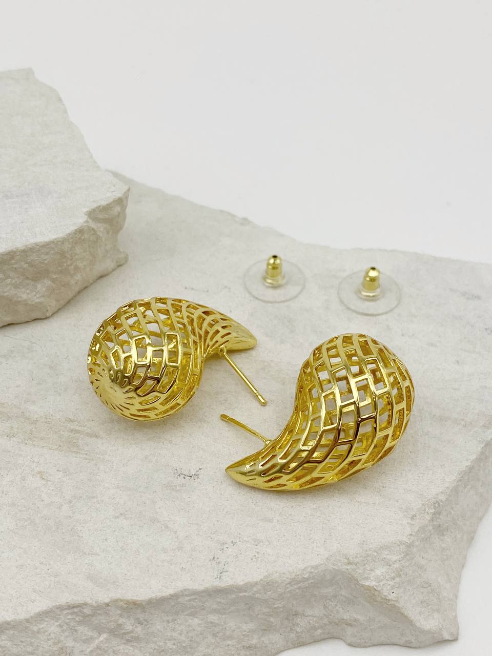 Серьги пусеты капли узор, 32х18мм, позолота, 941