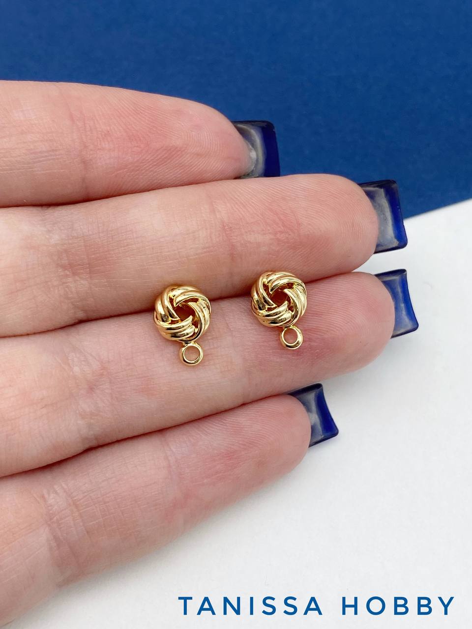 Швензы пусеты 8мм, основы для вклейки, позолота, Е310
