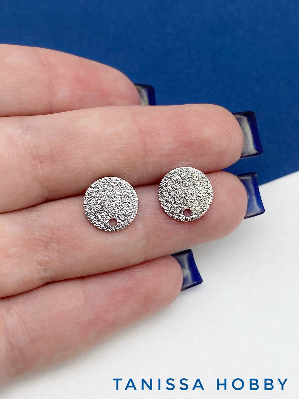 Швензы пусеты круг с рельефом 10мм, родий, Е805