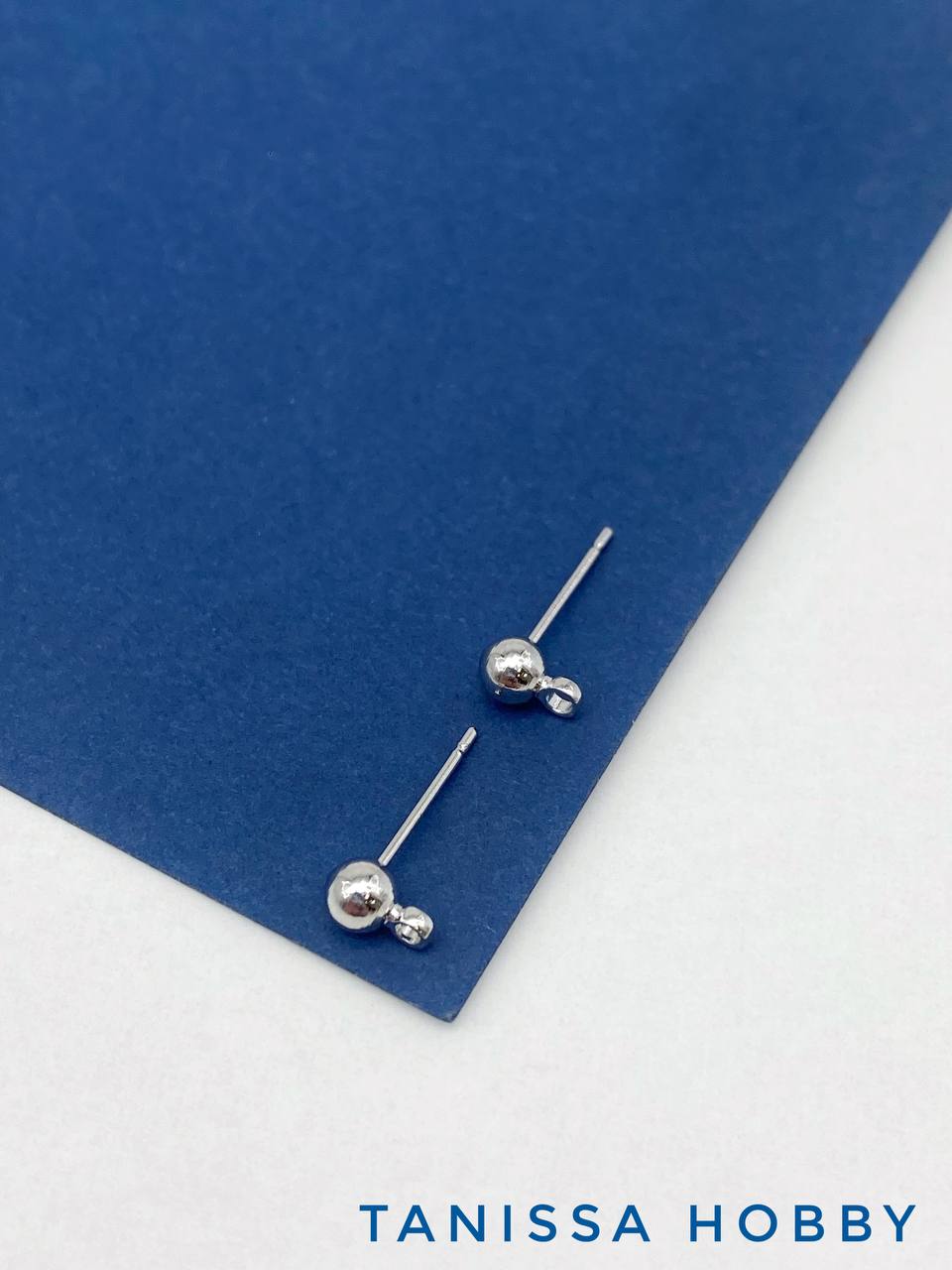 Швензы пусеты шарик 4мм, родий, Е817