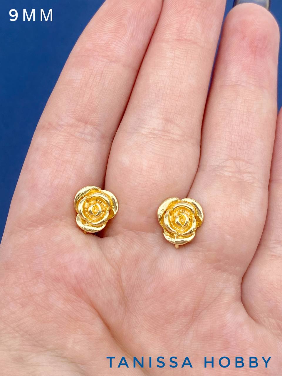 Швензы пусеты цветок роза 9мм, позолота, Е907