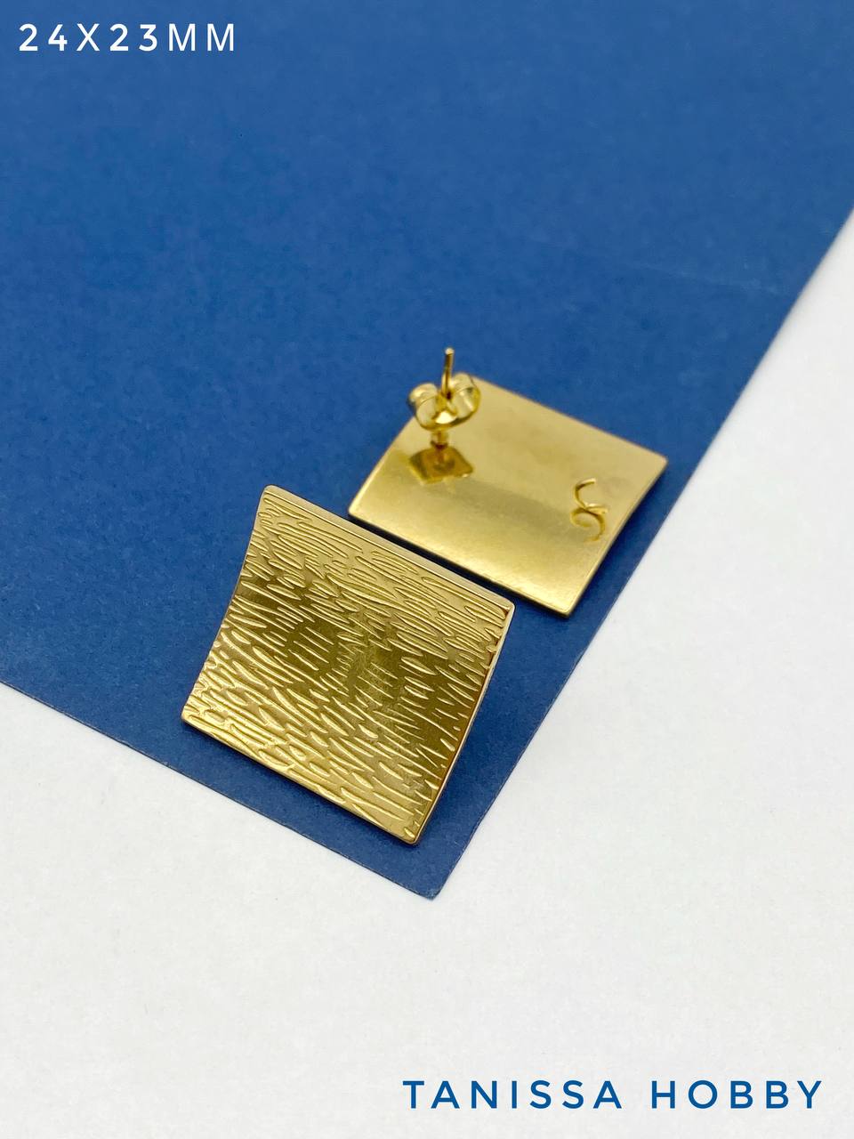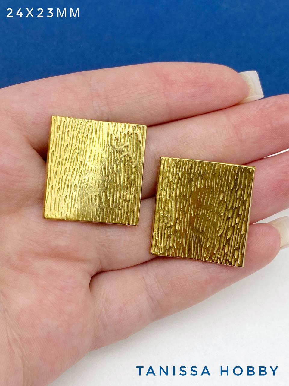 -Швензы пусеты квадрат, 24х23мм, сталь, позолота, Ш321