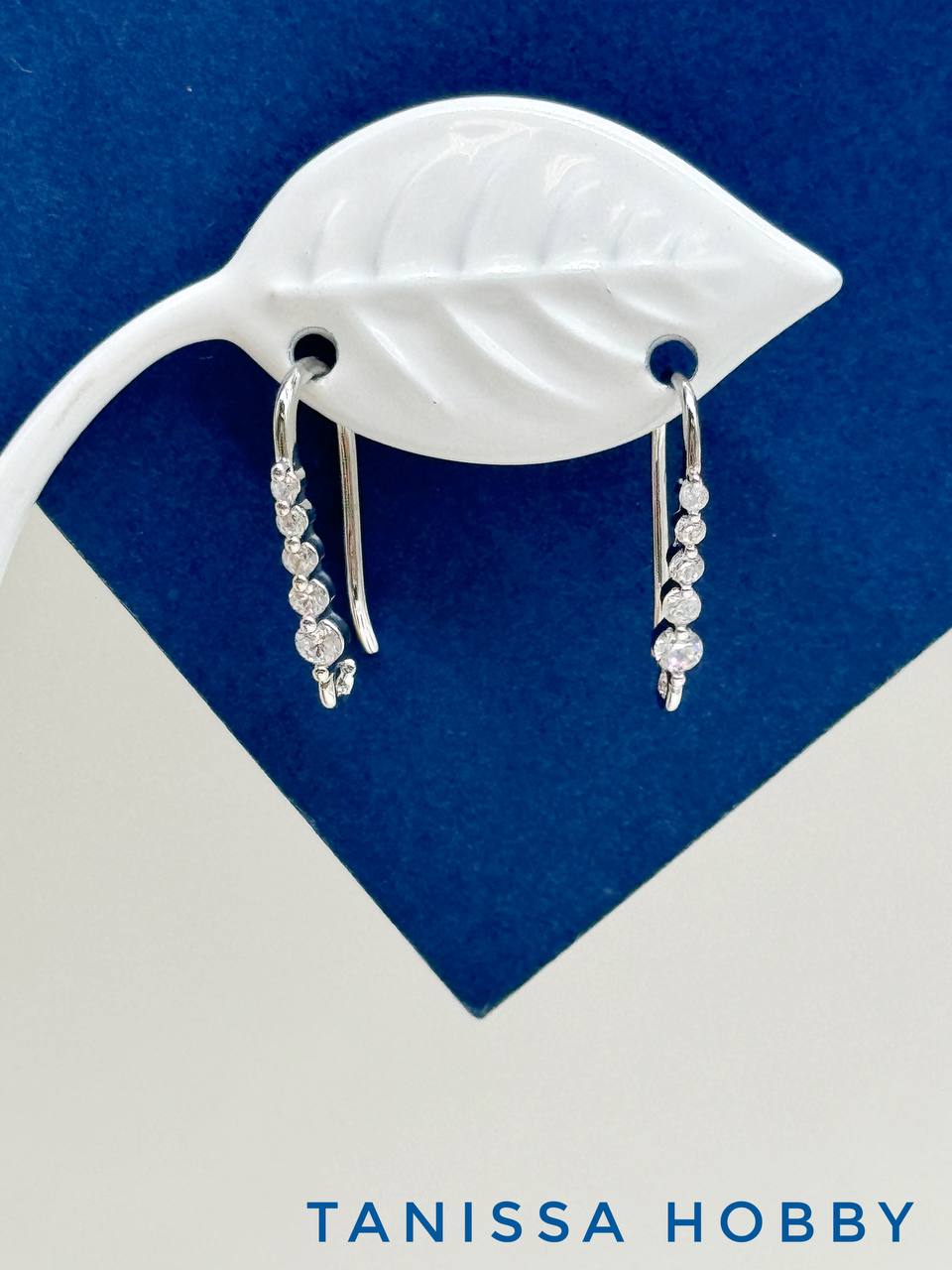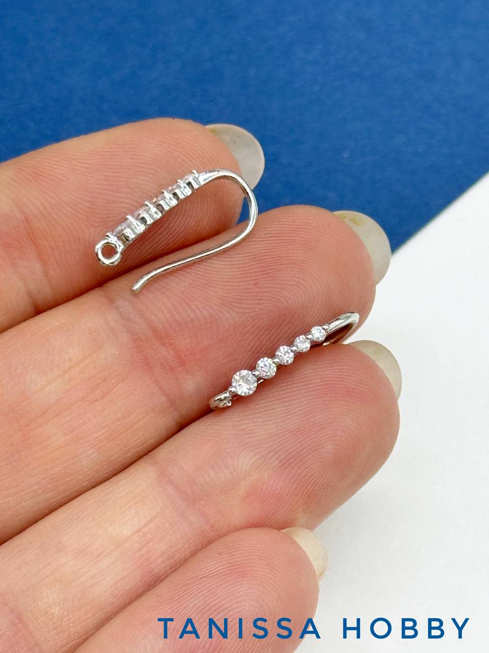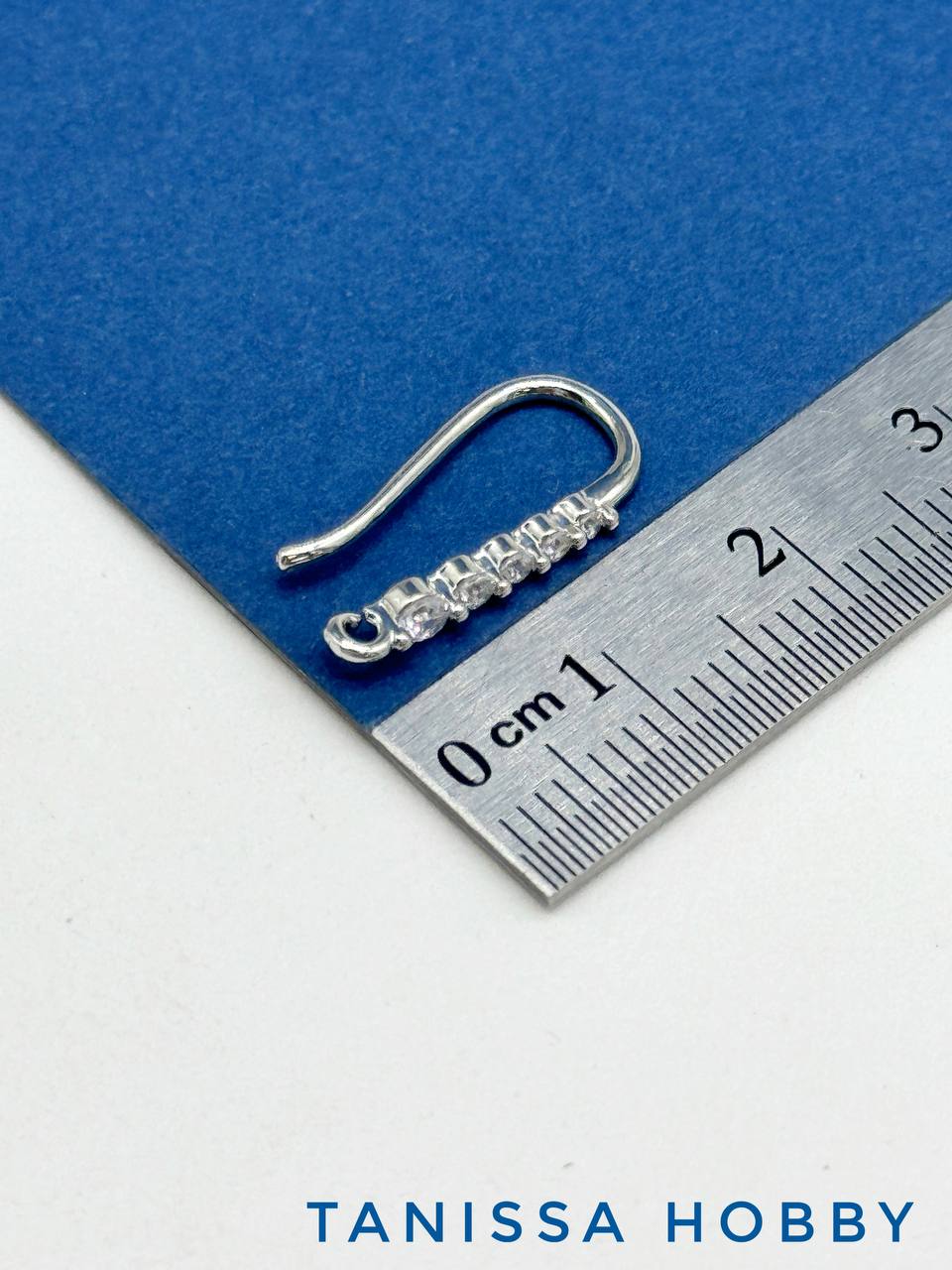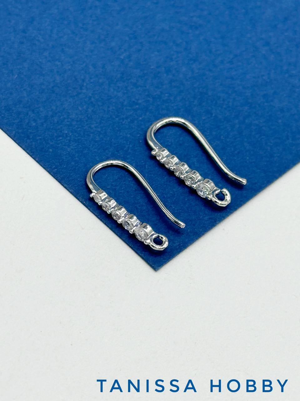 Швензы крючки с фианитами, родий, Е101