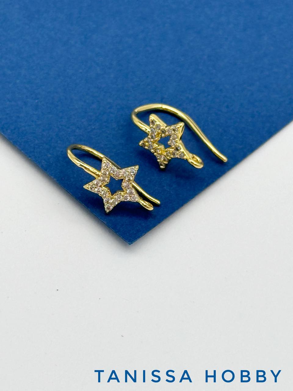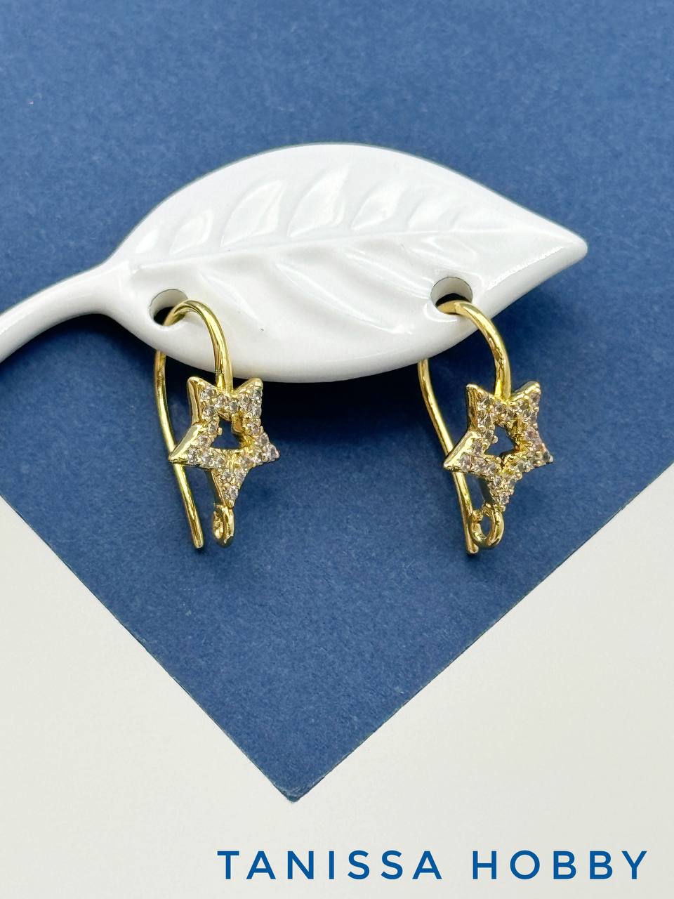 • Швензы крючки длинные с фианитами, позолота, Е111
