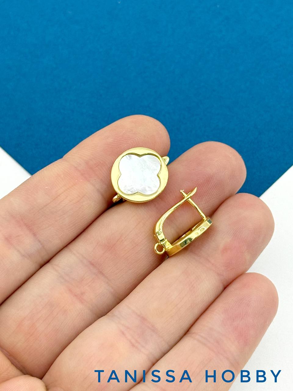 Швензы клевер перламутр, английский замок, позолота, 509