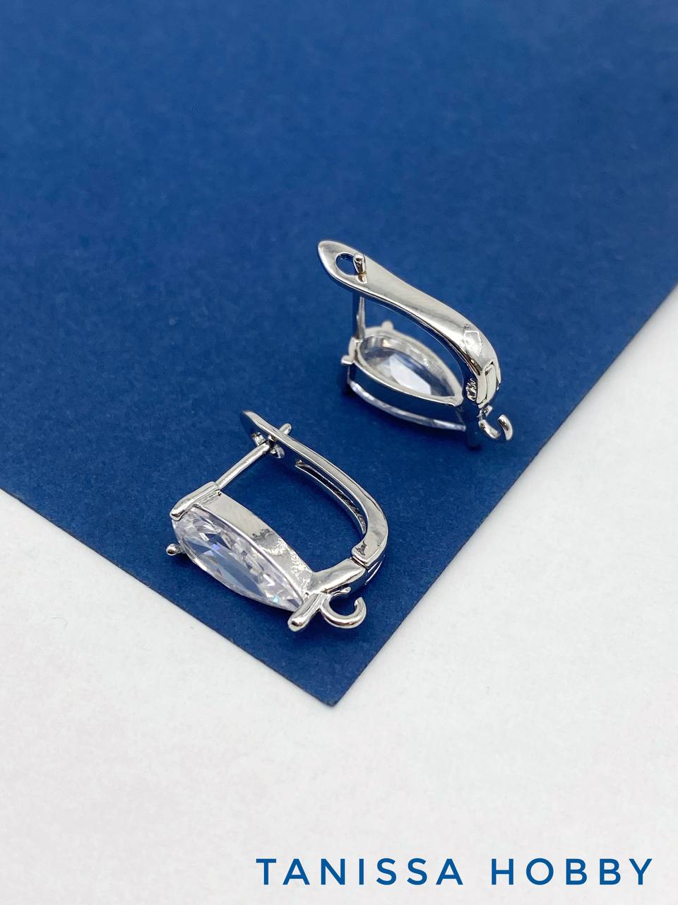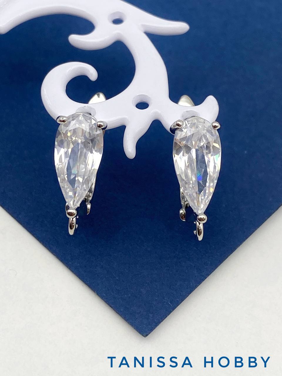 Швензы фианит капля, английский замок, родий, 713