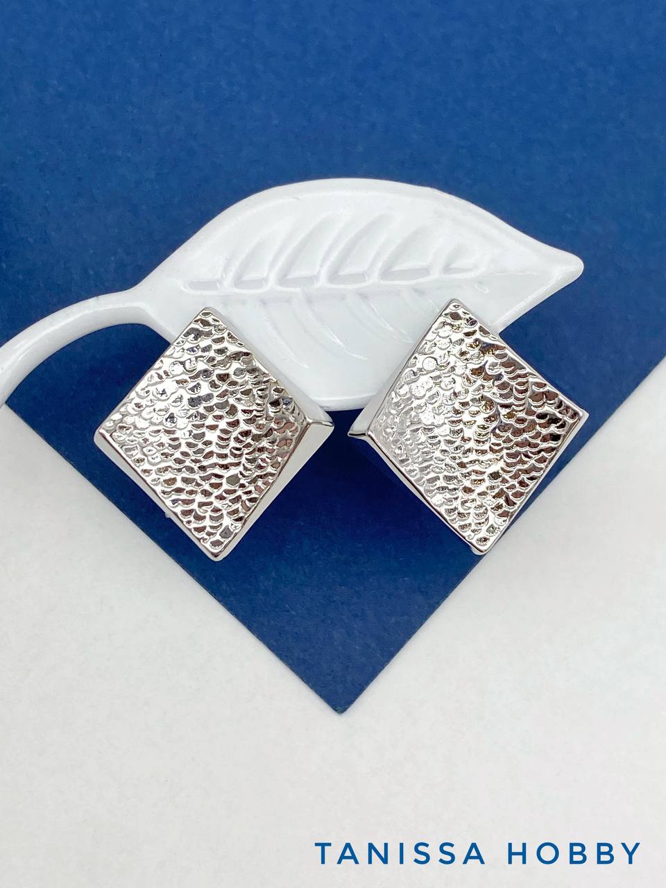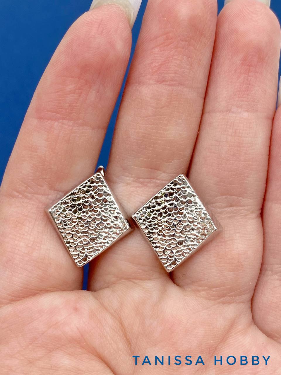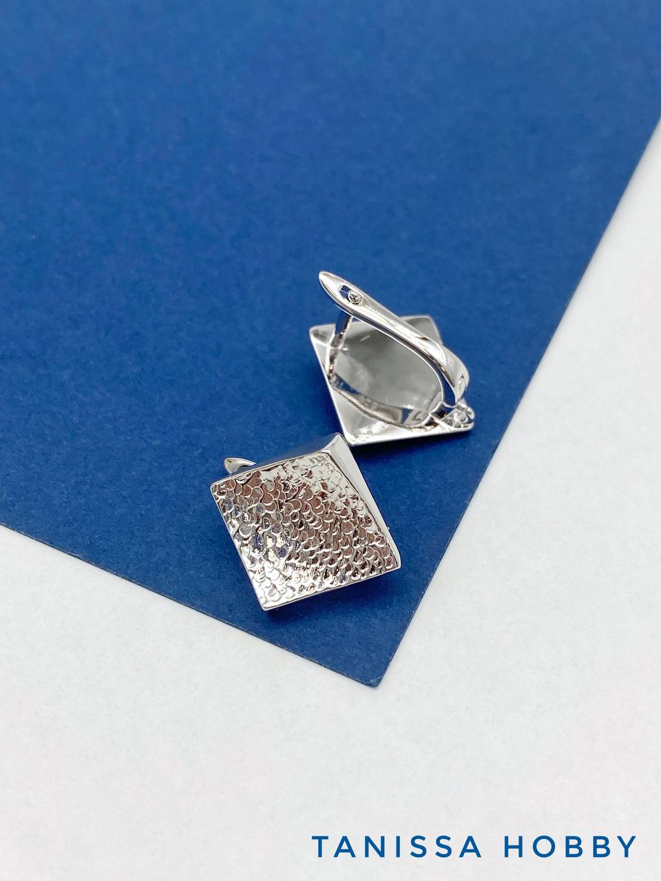 Швензы английский замок, ромб, мятый металл, родий, ШВ128