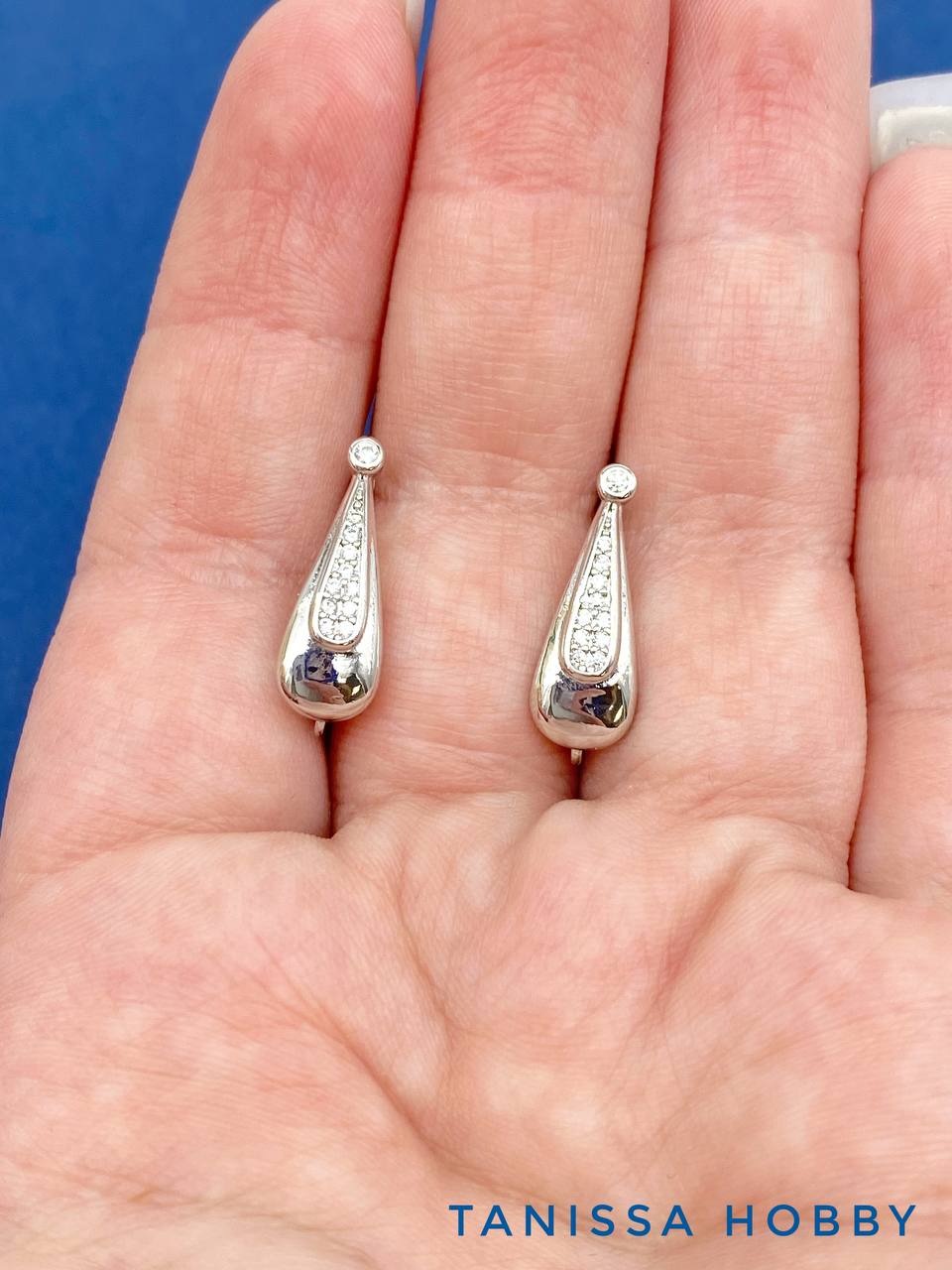 • Швензы с фианитами, английский замок, родий, 403